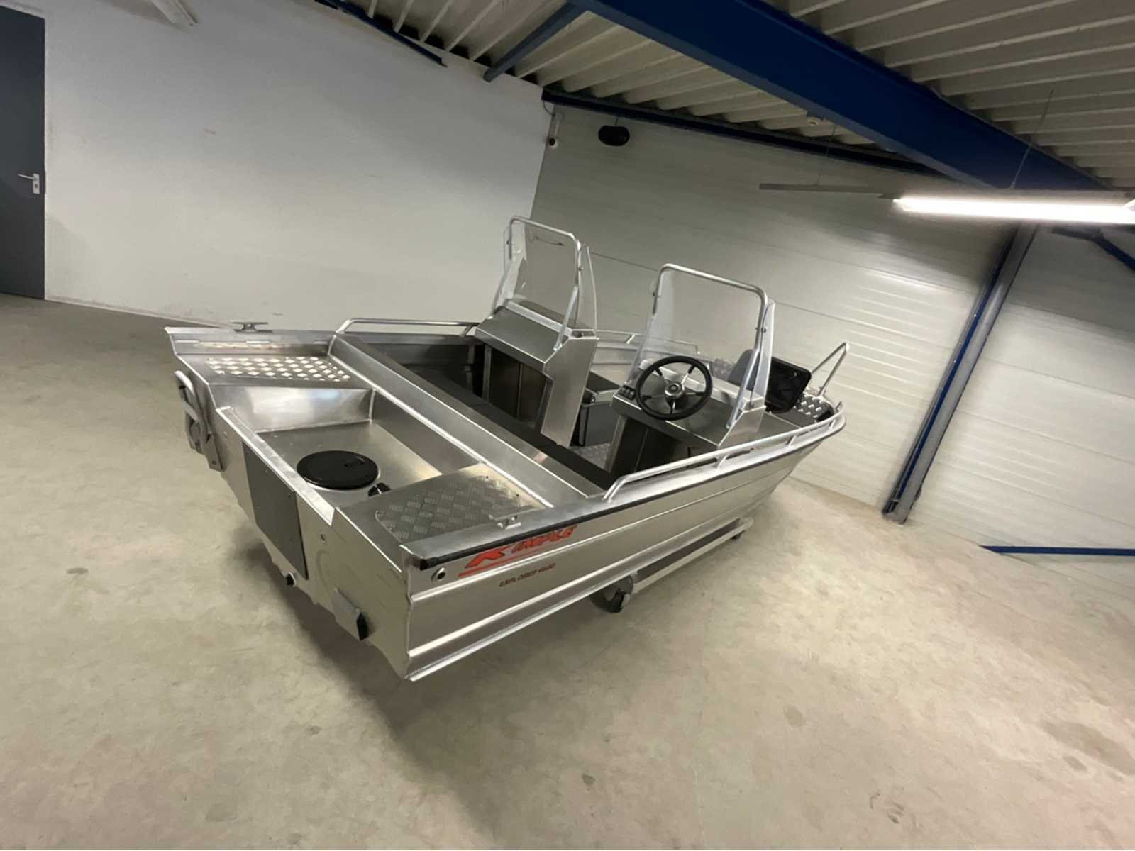 Kimple Explorer 460 Double Console fully welded saltwater proof aluminium Hull, catagory C, fomed 2k hull, livewell,water closed storage, electric pre rigged. Merk: Kimple Type: Explorer 460DC Rompmateriaal: Aluminium Brandstof: Benzine Bouwjaar: 2023 Vermogen: 50kW Inhoud brandstoftank: 25l Lengte over alles: 460m Breedte formaat: 225m Eigen gewicht: 500kg