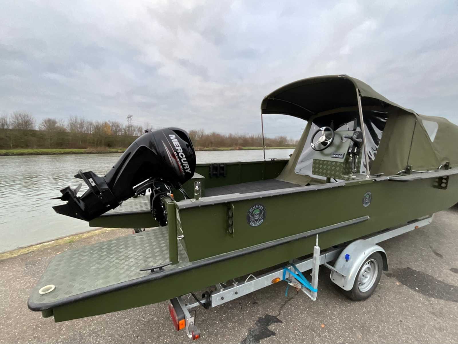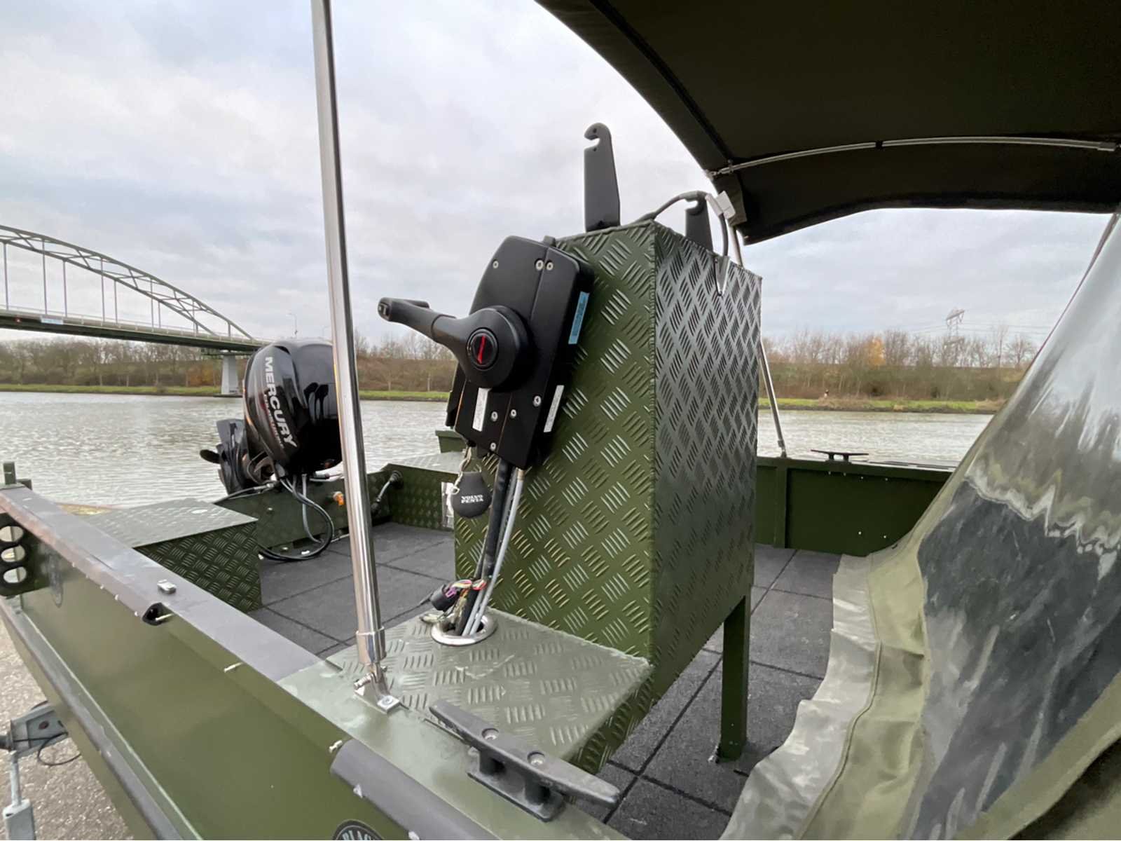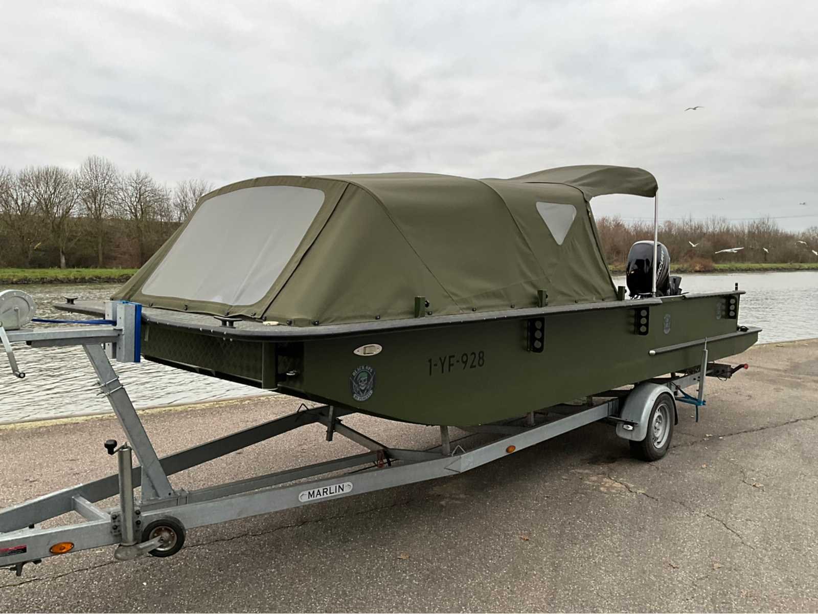 Het betreft een complete set,boot motor en trailer. De onderhoudshistorie is bij ons bekend en motor werkt naar behoren. De kap van de boot is custom made met een volledig rvs frame en geheel te verduisteren, voorzien van ramen en luifel en horgordijn. Motor en boot slechts enkele vaaruren. Merk: Arynboats Type: Model 700, 40hp Mercury Rompmateriaal: Aluminium Brandstof: Benzine Vermogen: 29.36kW Inhoud brandstoftank: 25l Kenteken trailer: 89WLSB Trailer merk + type: Marlin 1300 Aantal cilinders: 3 Lengte over alles: 9m Navigatieverlichting: true Breedte formaat: 2.3m Eigen gewicht: 600kg