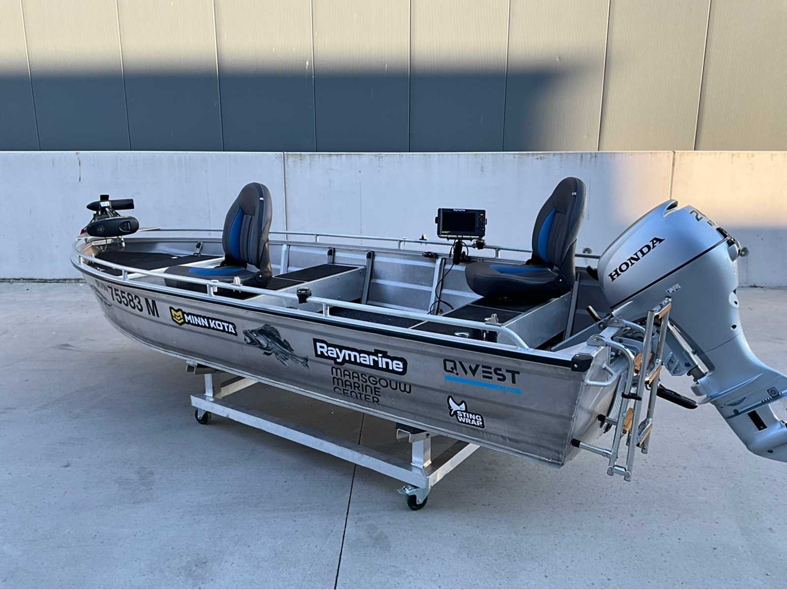 Zeer complete en uitgebouwde Qwest B421 visboot met 20pk electrische gestarte buitenboordmotor, Werpdek met opbergvak,startaccu, onderhoudshistorie bekend en motor werkt naar behoren, Minn Kota Powerdrive 12v, Raymarine Elemend met hypervision transducer, Tempress Probax stoelen met stoelhoezen, uitneembare tafel, diverse railblaza opname, rvs zwemtrap. Merk: Qwest Marine Type: B421 met 20 pk Honda Rompmateriaal: Aluminium Brandstof: Benzine Bouwjaar: 2022 Vermogen: 15kW Inhoud brandstoftank: 15l Lengte over alles: 420m Navigatieverlichting: true Navigatie apparatuur: true Eigen gewicht: 250kg Afgelezen urenstand: 75hr