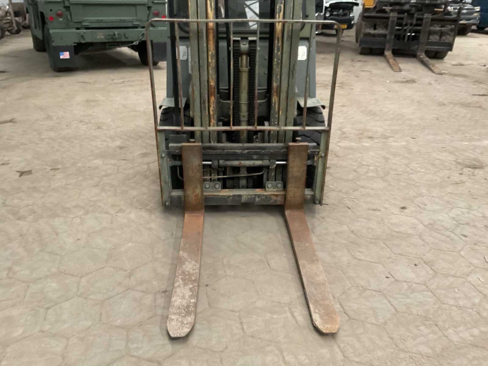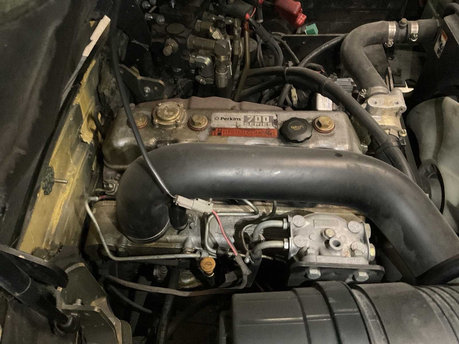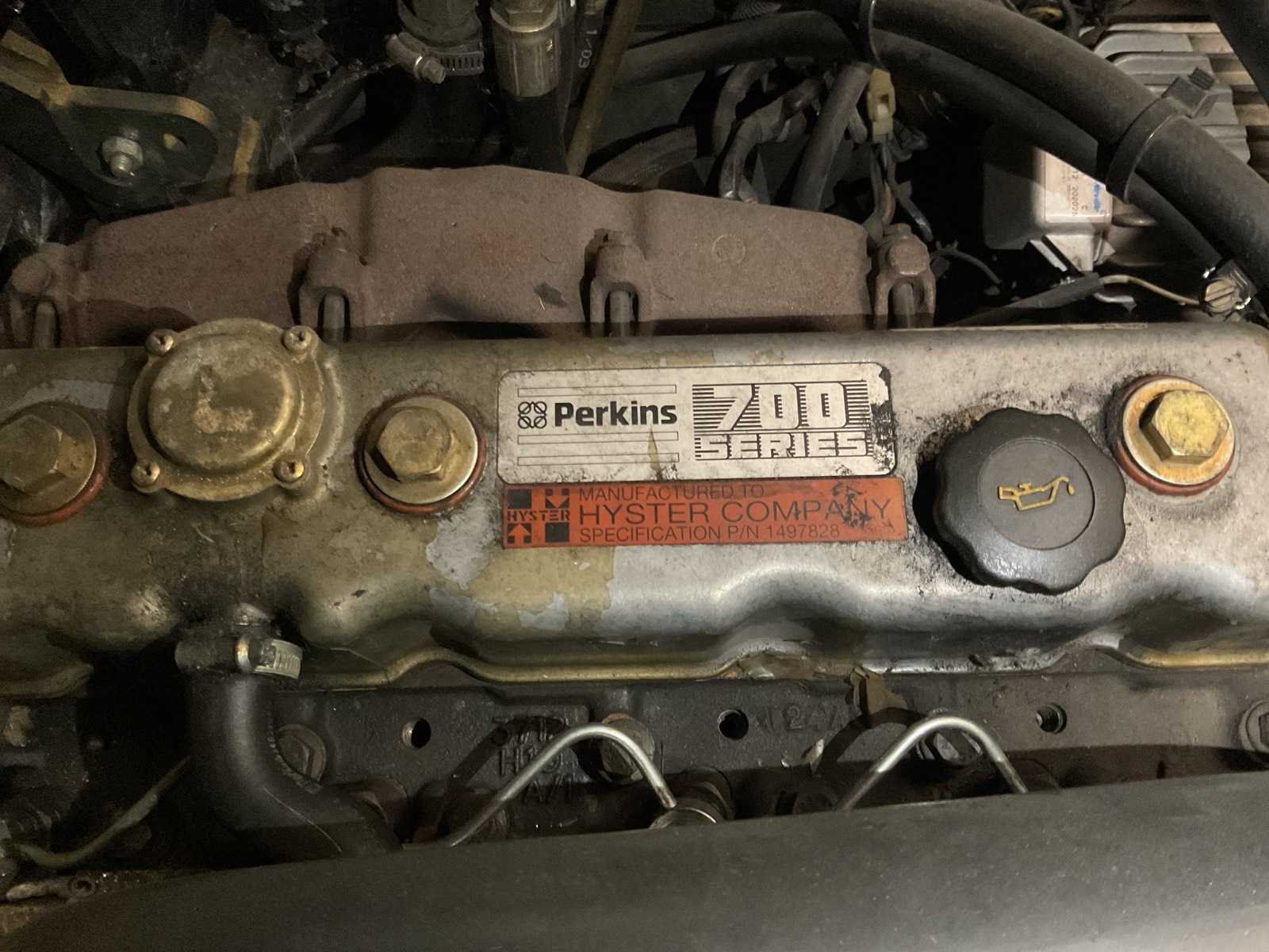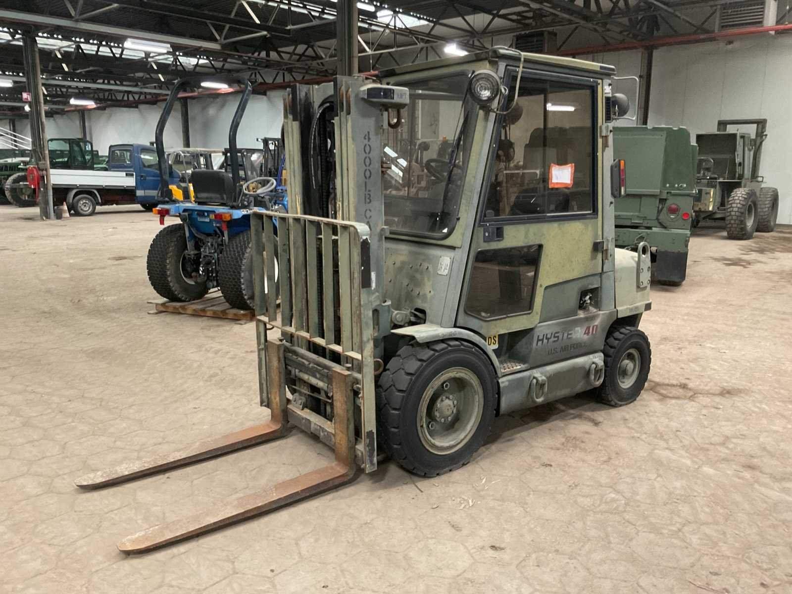 Perkins dieselmotor; 4 cilinder; geen sleutel; Merk: Hyster Type: H40XM Serienummer: H177G41459A Brandstof: Diesel Mast: Triple Soort band: Luchtbanden Free-lift: true Side-shift: true Triple mast: true Eigen gewicht: 3770kg Hefvermogen: 1814kg Lepellengte: 1060mm Max. hefhoogte: 4200mm Hefhoogte: 4200mm Luchtbanden: true Minimale doorrijhoogte: 2200mm Diesel: true