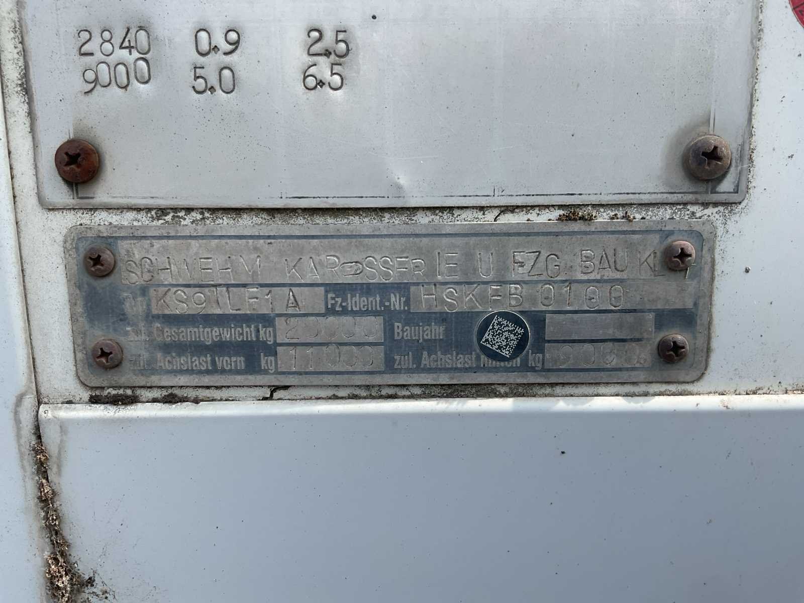City Merk: Schwehm Type: KS9TLF1A Chassisnummer VIN: HSKFB0100 Aantal assen: 1 Totale afmeting L: 10000mm Totale afmeting Breedte: 2520mm Totale afmeting Hoogte: 4000mm No self drive export!: true
