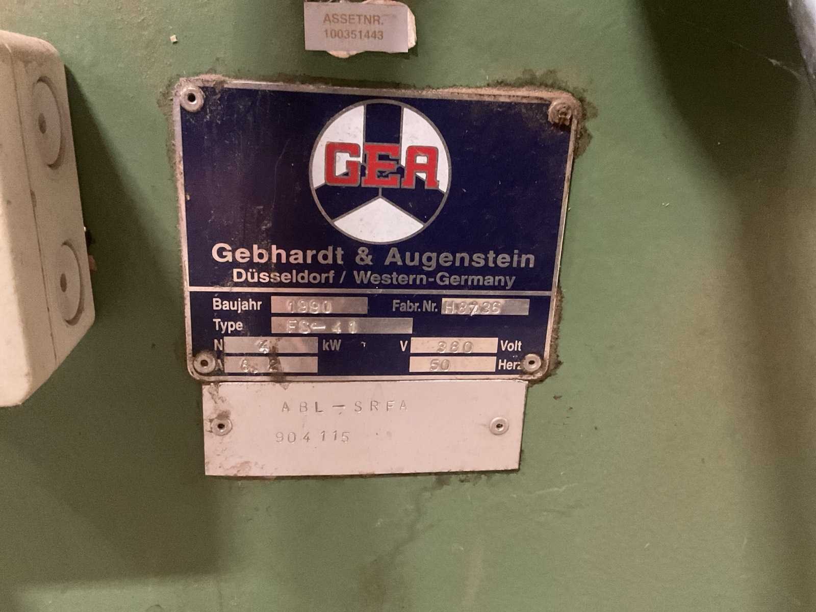 Merk: GEA Type: FS-41 Bouwjaar: 1990 Serienummer: H8736 Aansluiting: 380V Afmeting l: 2050mm Afmeting b: 730mm Afmeting h: 860mm