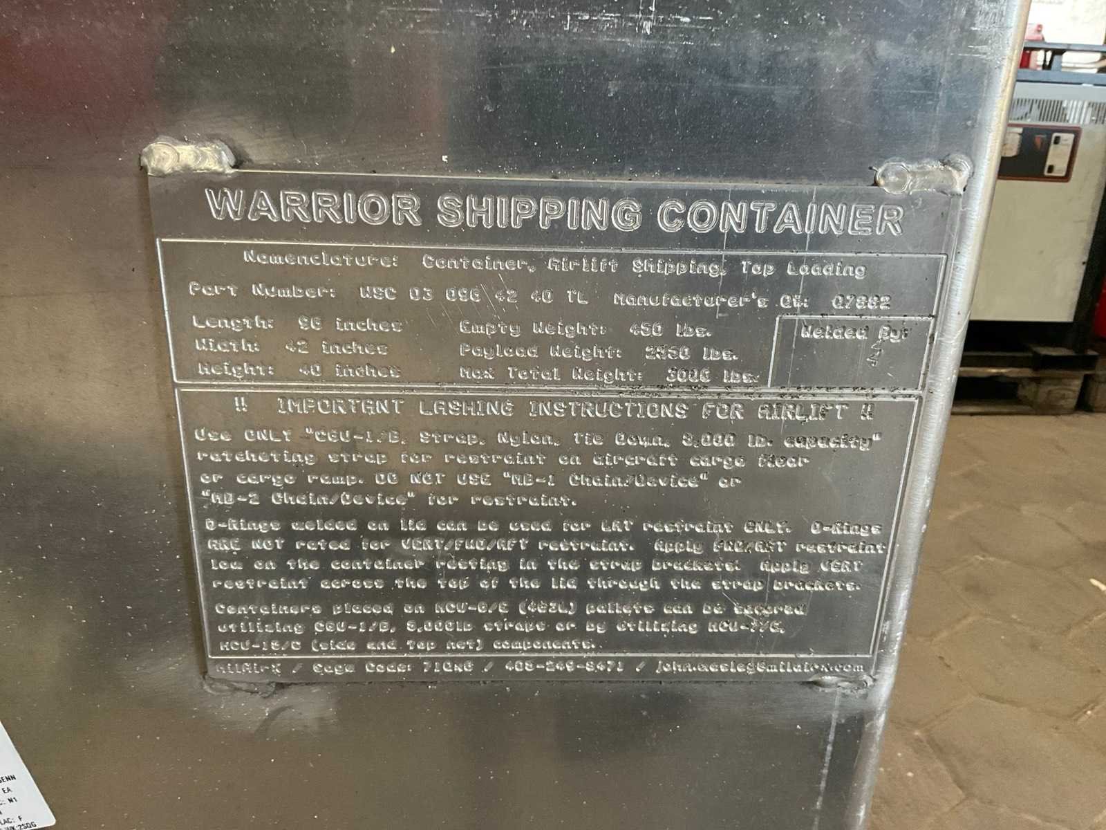 In aluminium container; afmeting container; 245x110x110; Totale lengte opgebouwd set; 920m; Merk: MilAirX Type: Aluminium Afmeting b: 760mm