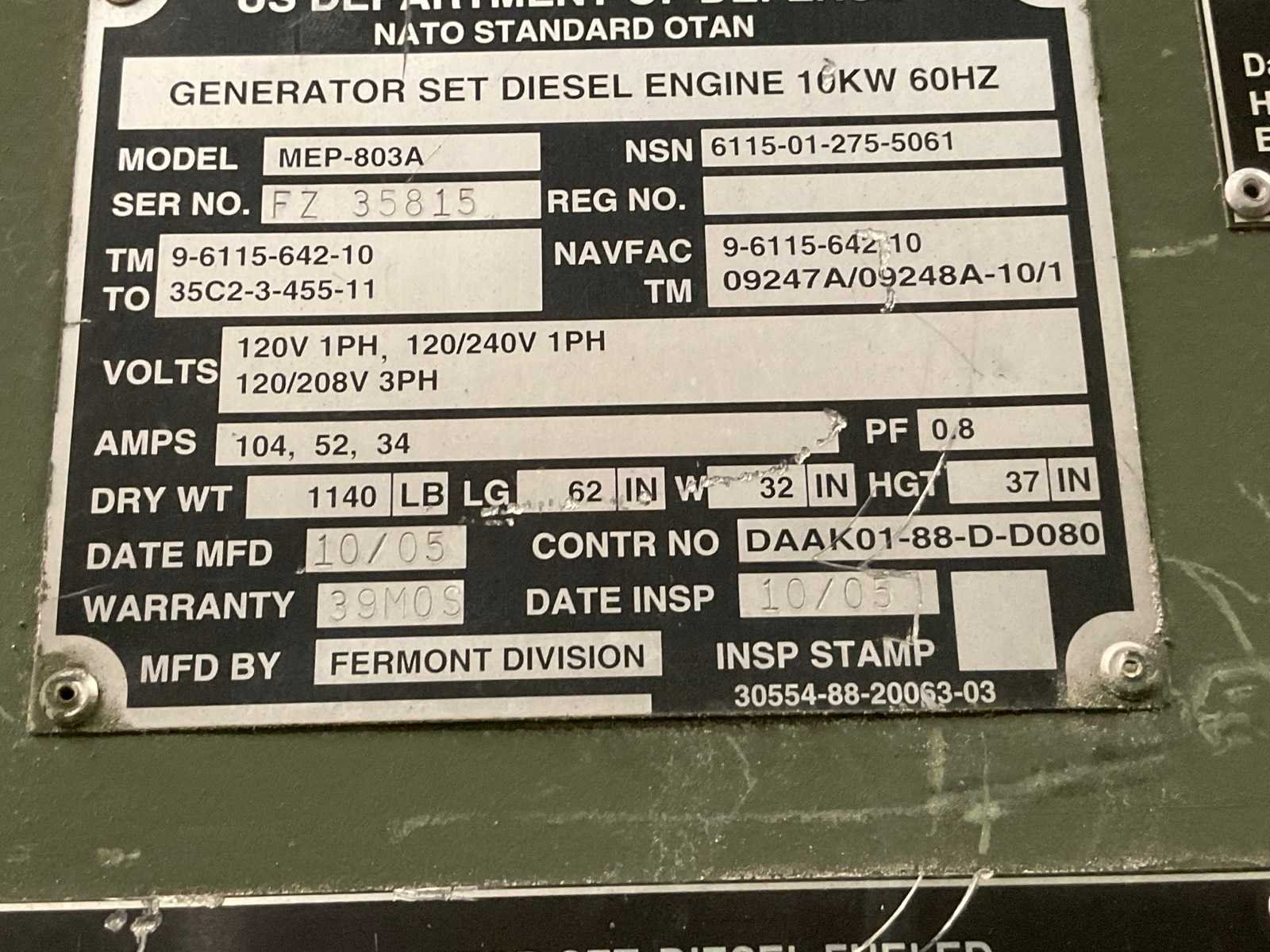Merk: Fermont devision Type: MEP-803A Bouwjaar: 2005 Serienummer: FZ 35815 Diesel: true Motorvermogen (kW): 10kW Afgelezen urenstand: 2791 Totale afmeting L: 1550mm Totale afmeting Breedte: 800mm Totale afmeting Hoogte: 930mm