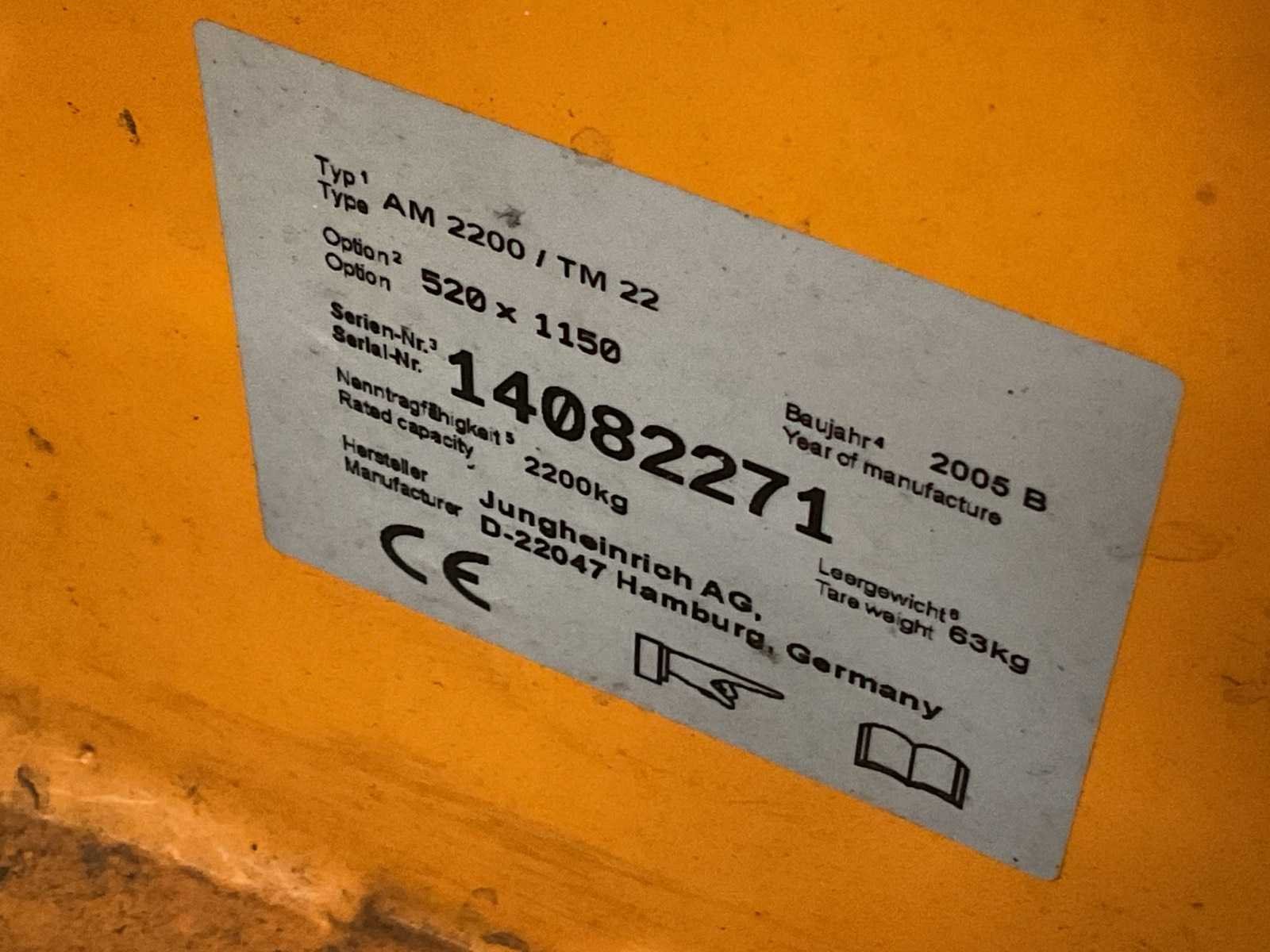 Merk: Jungheinrich Type: AM2200/TM22 Bouwjaar: 2005 Hefvermogen: 2200kg Lepellengte: 1150mm