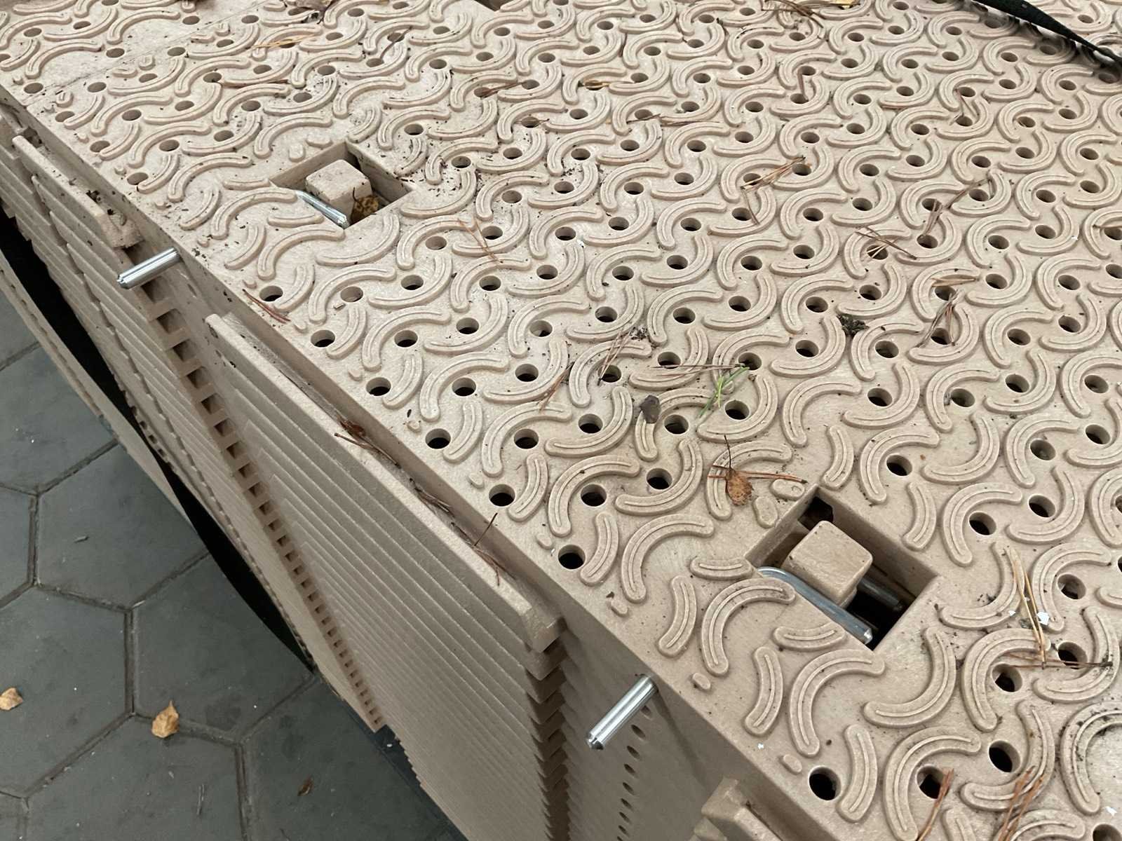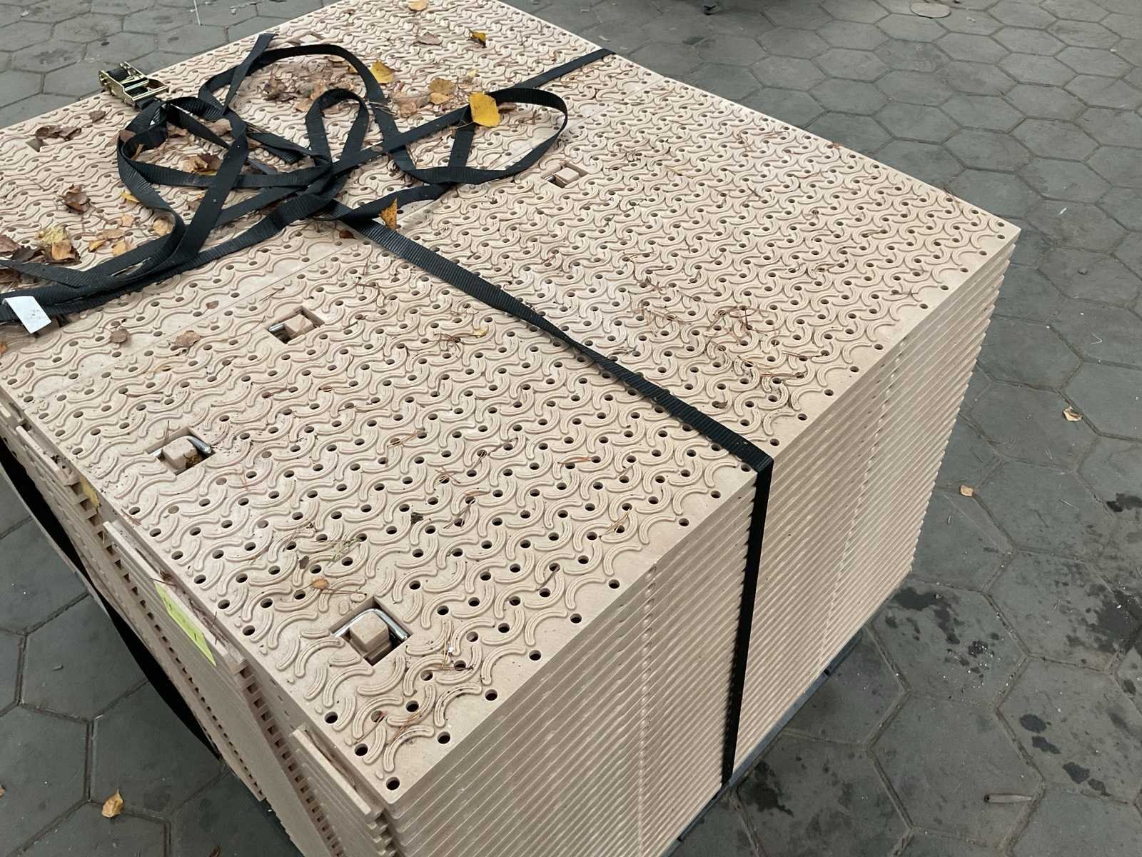 60 vloerdelen op 1 pallet Lengte: 1055cm Breedte: 650cm Hoogte: 25cm