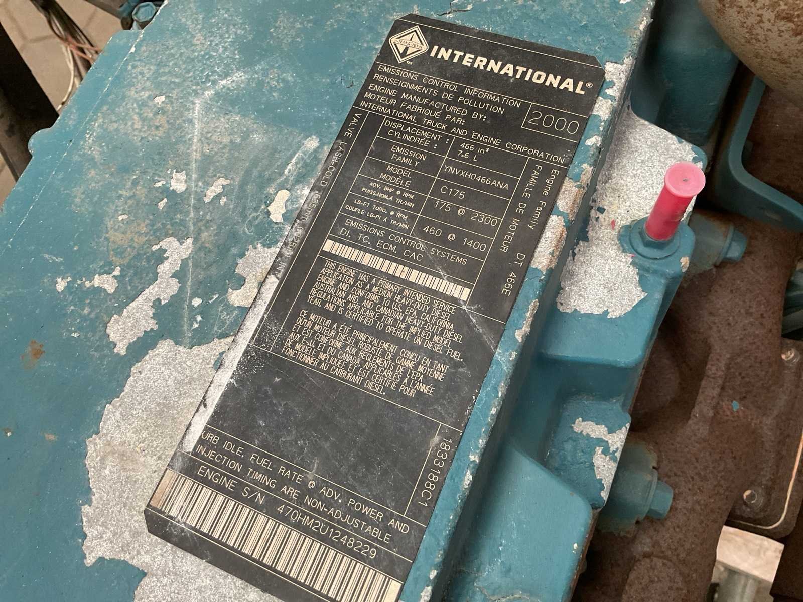 Merk: International Type: C175 Serienummer: YNVXH0466ANA Toerental bereik: 2300rpm Aantal cilinders: 6