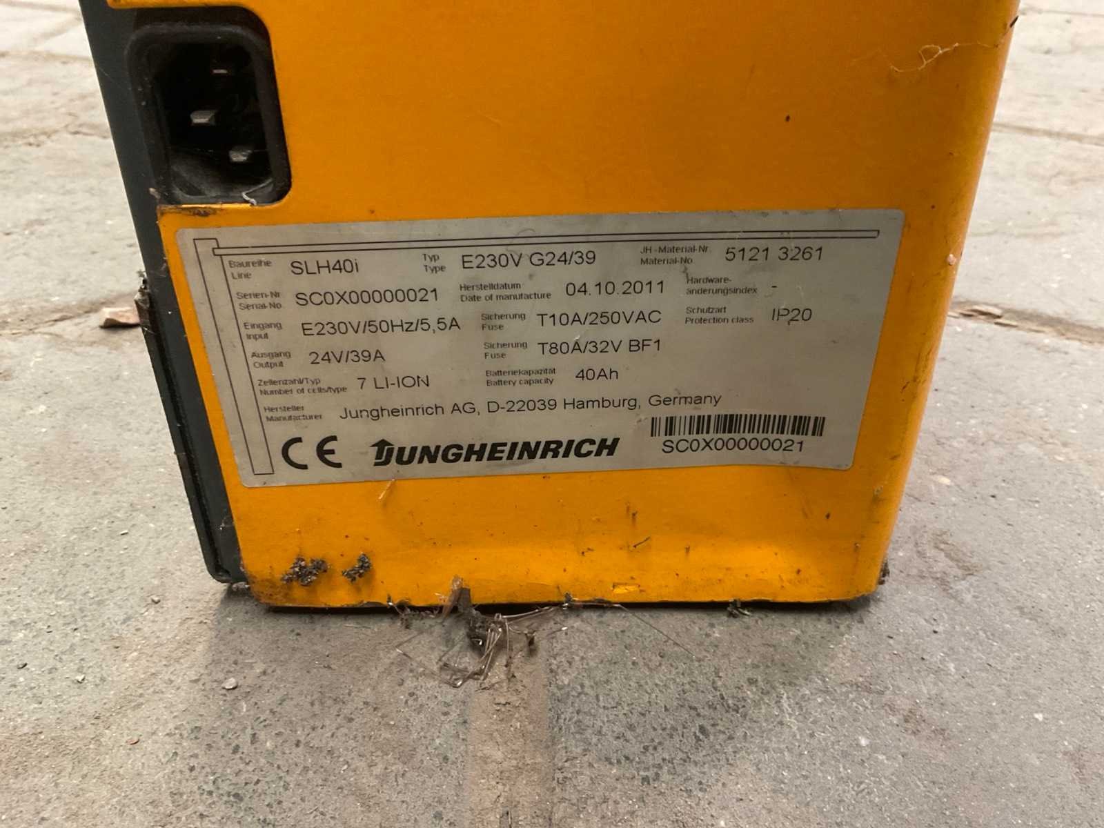 Merk: Jungheinrich Type: SLH40i Bouwjaar: 2011 Spanning: 24V Laadstroom: 39A