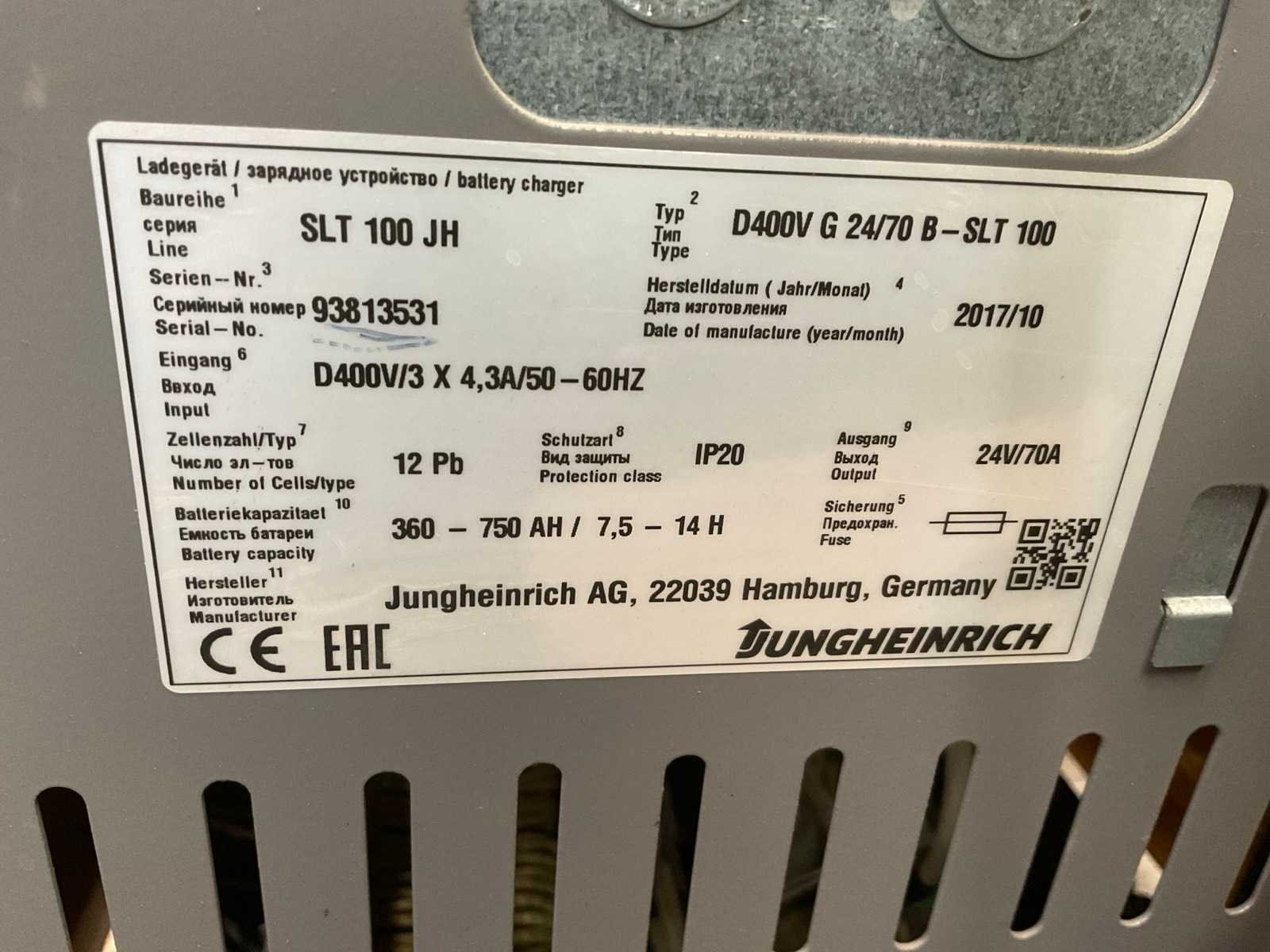 Merk: Jungheinrich Type: SLT100 Bouwjaar: 2017 Spanning: 24V Laadstroom: 70A Aansluiting: 400V