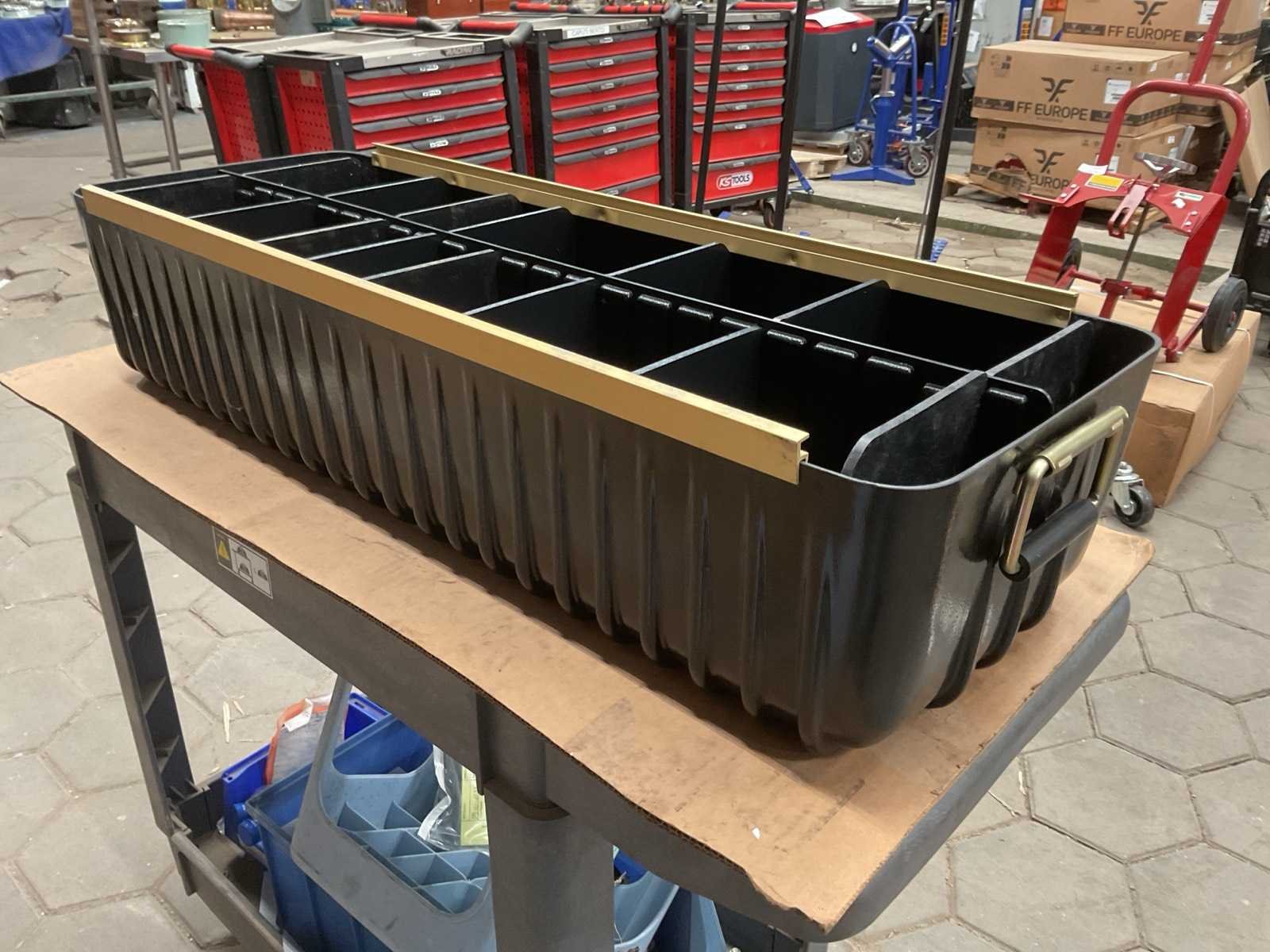 Merk: J & B Manufacturing Kunststof: true Met deksel: true Totale afmeting L: 1010mm Totale afmeting Breedte: 350mm Totale afmeting Hoogte: 215mm