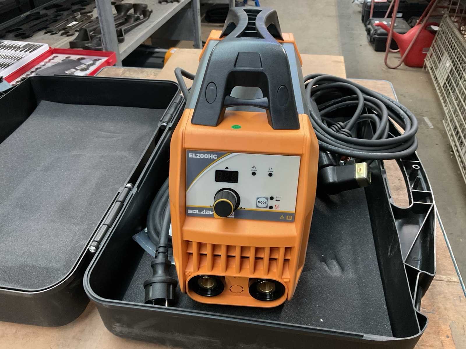 Merk: Soldatech Type: EL200HG Inschakelduur: 15% Max. lasvermogen: 200A Aansluiting: 230V