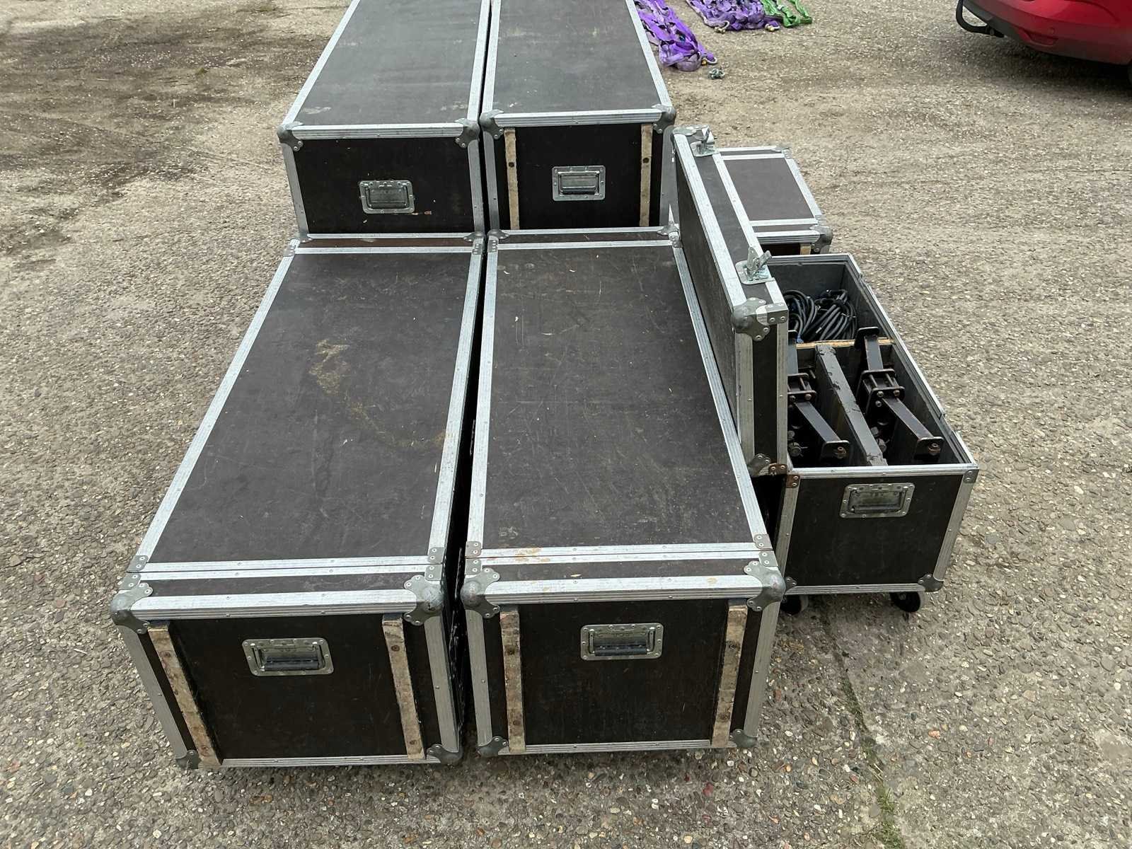 Set bestaat in totaal uit 6 flightcases. 12x 8” top AR208, 4x sub Arso 215, versterkerrack met Ram audio LMX-244 loudspeaker management system en 3x RAm Audio versterker ( DQX 2.4,4.0 en 5.5) Merk: Space Equipment