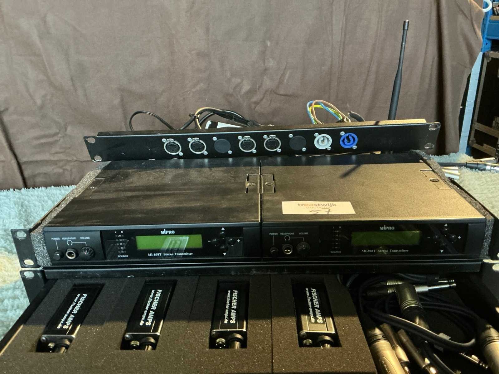 Voorzien van 2x belclip, 4x passieve wired receiver, 2x actieve wired receiver. Voorzien van 19” aansluitpaneel. Merk: Mipro Type: MI 808T