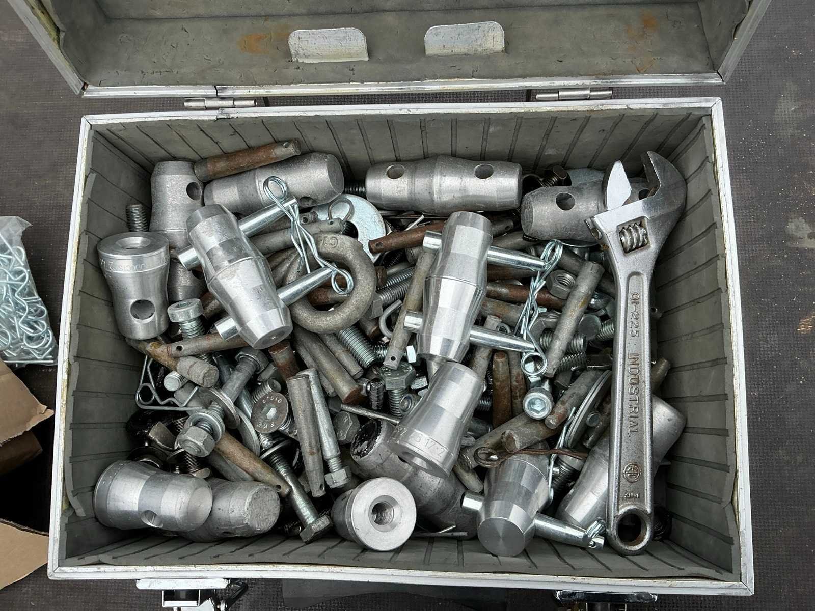 Bestaande uit pennen, bahco en zakje ongebruikte clips. Totale afmeting L: 320mm Totale afmeting Breedte: 230mm Totale afmeting Hoogte: 16mm