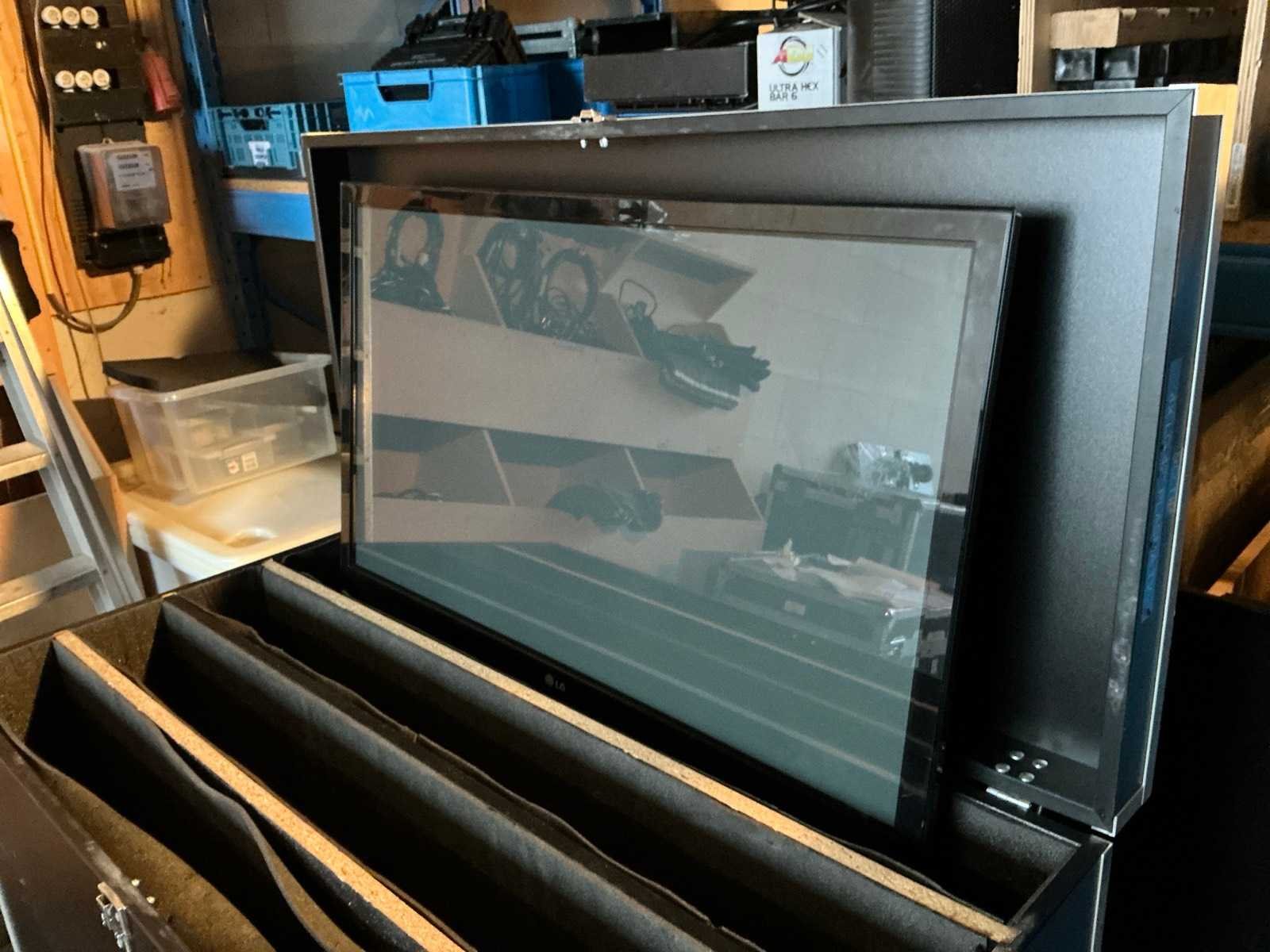 In en met Flightcase. Merk: LG Model: 42PT353 Lengte: 123cm Breedte: 61cm Hoogte: 104cm