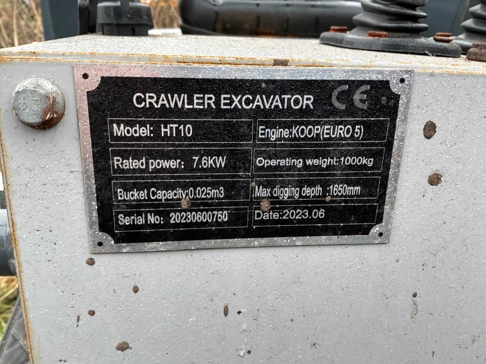 Let op! Accu defect, met schuif en bak geleverd Merk: Hightop Type: HT10 Bouwjaar: 2023 Serienummer: 20236750 Motorvermogen (kW): 7.6kW Aantal cilinders: 1 Brandstof: Diesel Bedrijfsgewicht: 1000kg Gieklengte: 2500mm Max. werkbereik: 800mm Max. graafdiepte: 1650mm Inclusief graafbak: Ja Graafbak afm. l: 800mm Graafbak afm. b: 320mm Graafbak afm. h: 200mm Rups breedte: 180mm Afgelezen urenstand: 193 Totale afmeting L: 2850mm Totale afmeting Breedte: 960mm Totale afmeting Hoogte: 2250mm