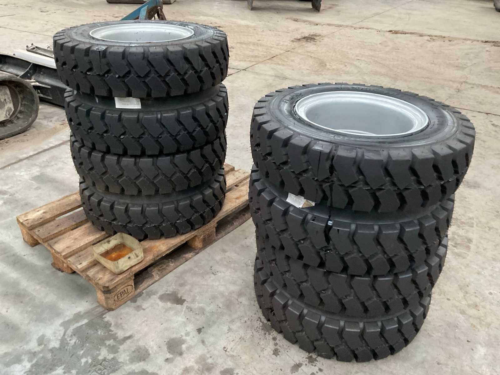Voorzien van 8-gaats stalen velg, ø 370mm, as ø 220mm, steekmaat: 275mm. Ongebruikt Merk: Mitas Type: FL-08 Fork Lift Bandenmaat: 7.50-15