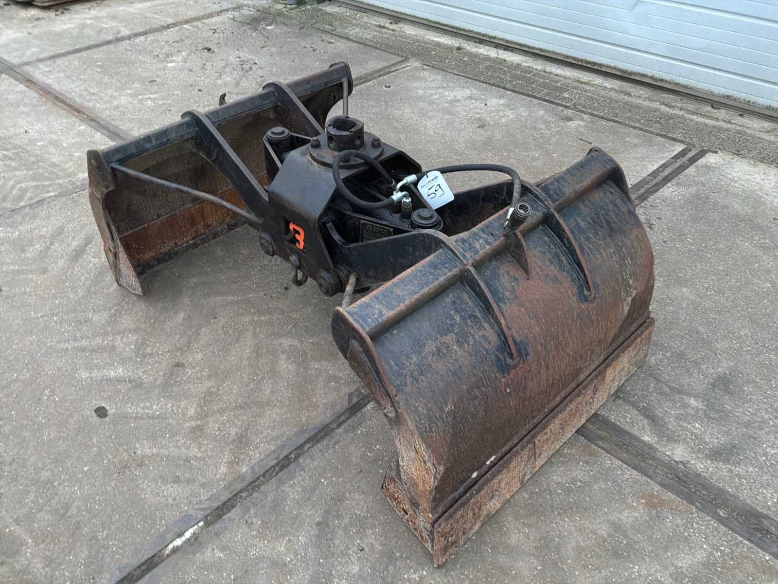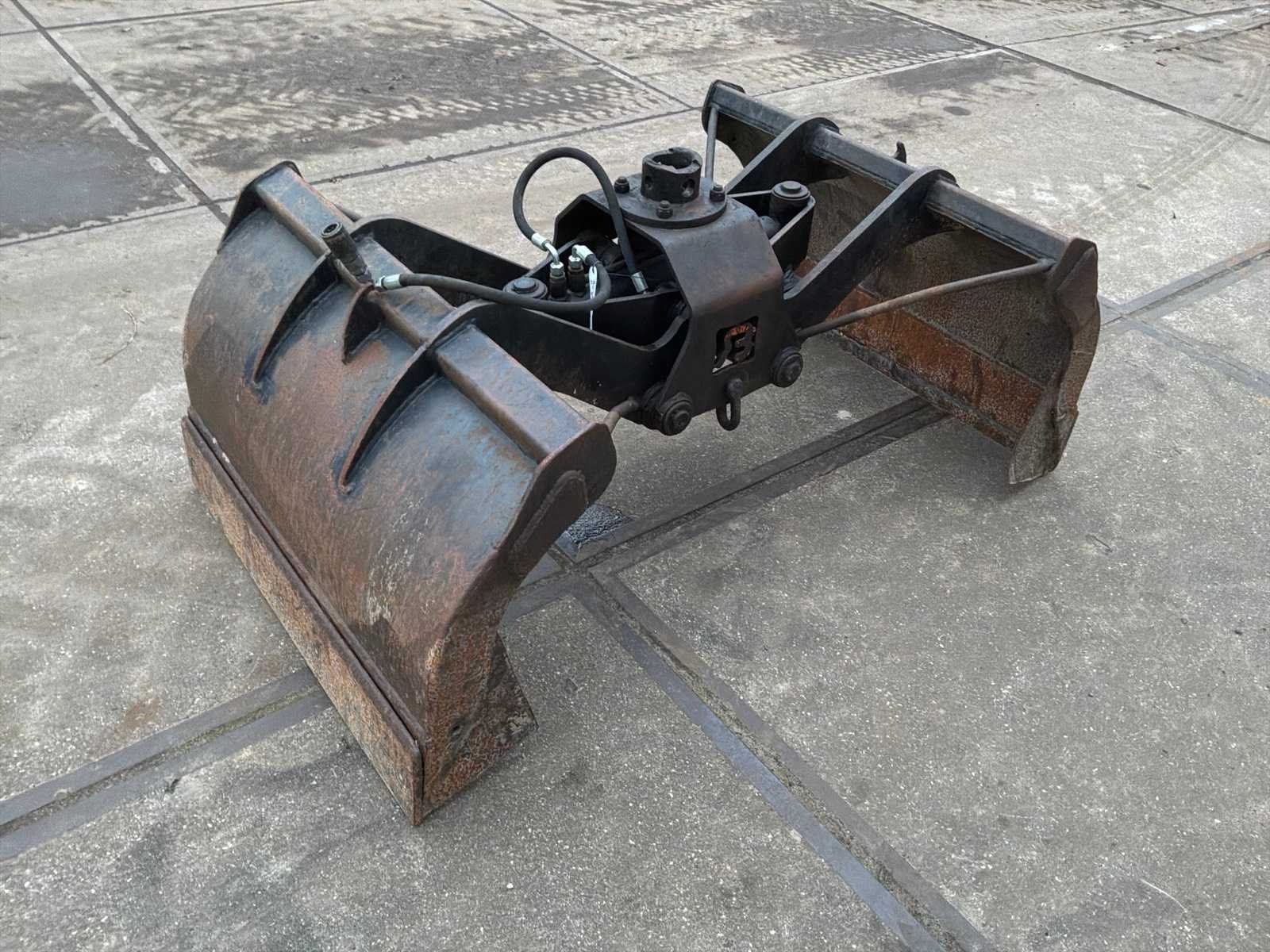 Inhoud 0,5 M3, hydraulisch gestuurd Merk: Bakker Type: HB/100 Serienummer: 12453 Eigen gewicht: 380kg Totale afmeting L: 1050mm Totale afmeting Breedte: 1700mm Totale afmeting Hoogte: 650mm