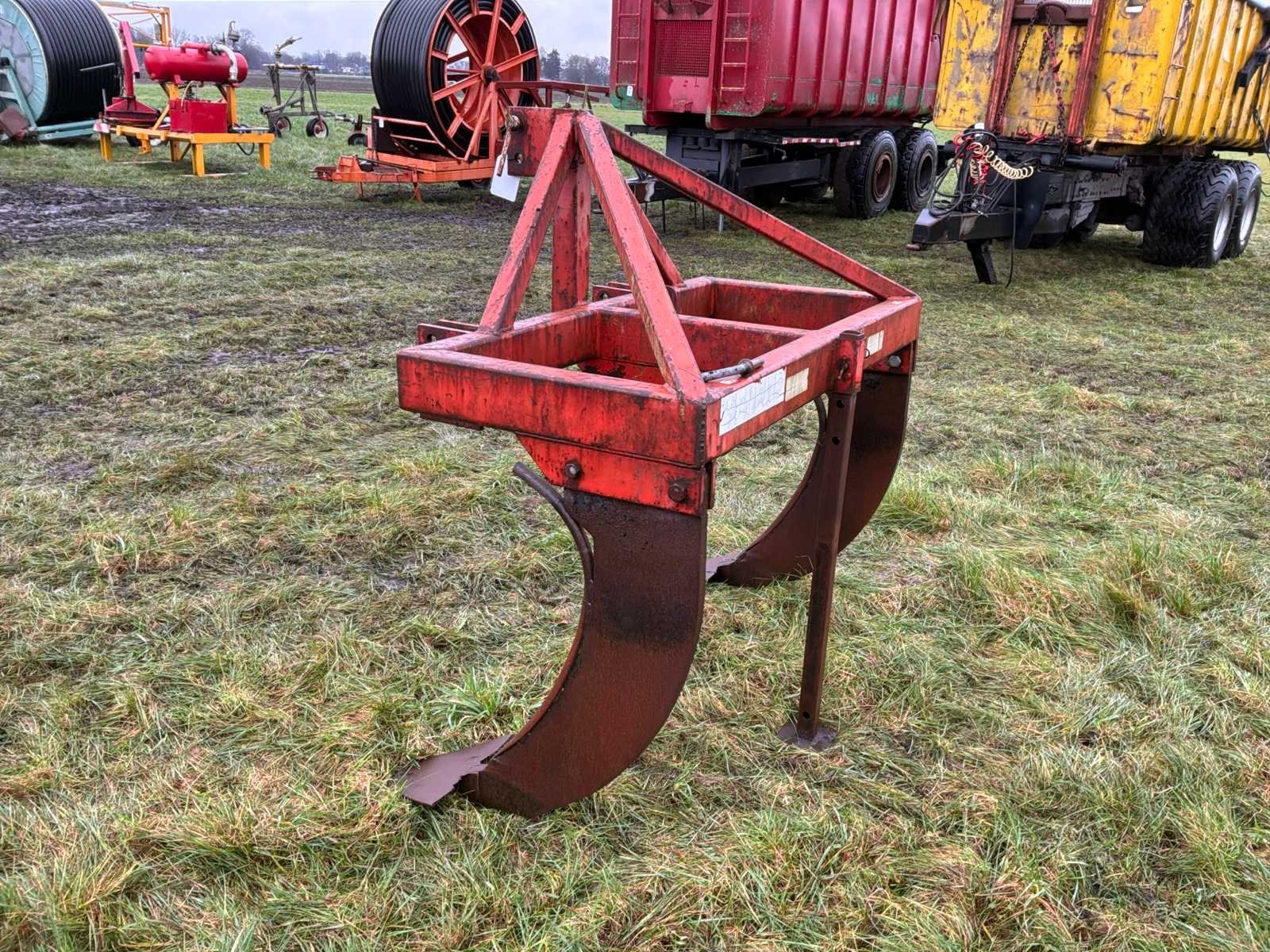 Ontbreekt 1 woelpoot, 3-punts gedragen Merk: De Vries Serienummer: 50.0072 Werkbreedte: 3250mm Werkdiepte: 900mm Totale afmeting L: 1000mm Totale afmeting Breedte: 1580mm Totale afmeting Hoogte: 1700mm