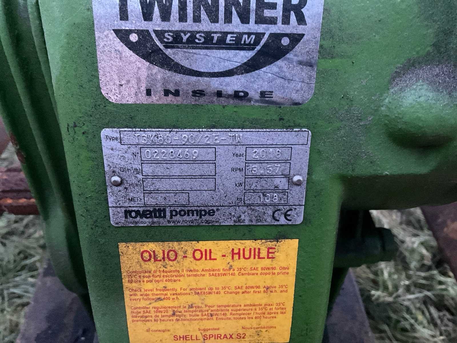 Voorzien van aftakas aandrijving. Voorzien van nieuwe pomp. Accord aansluiting Merk: Rovatti Type: T3K80-90/2E-TW Bouwjaar: 2018 Serienummer: 0228469 Diameter circa: 90mm Totale afmeting L: 2500mm Totale afmeting Breedte: 1800mm Totale afmeting Hoogte: 2500mm