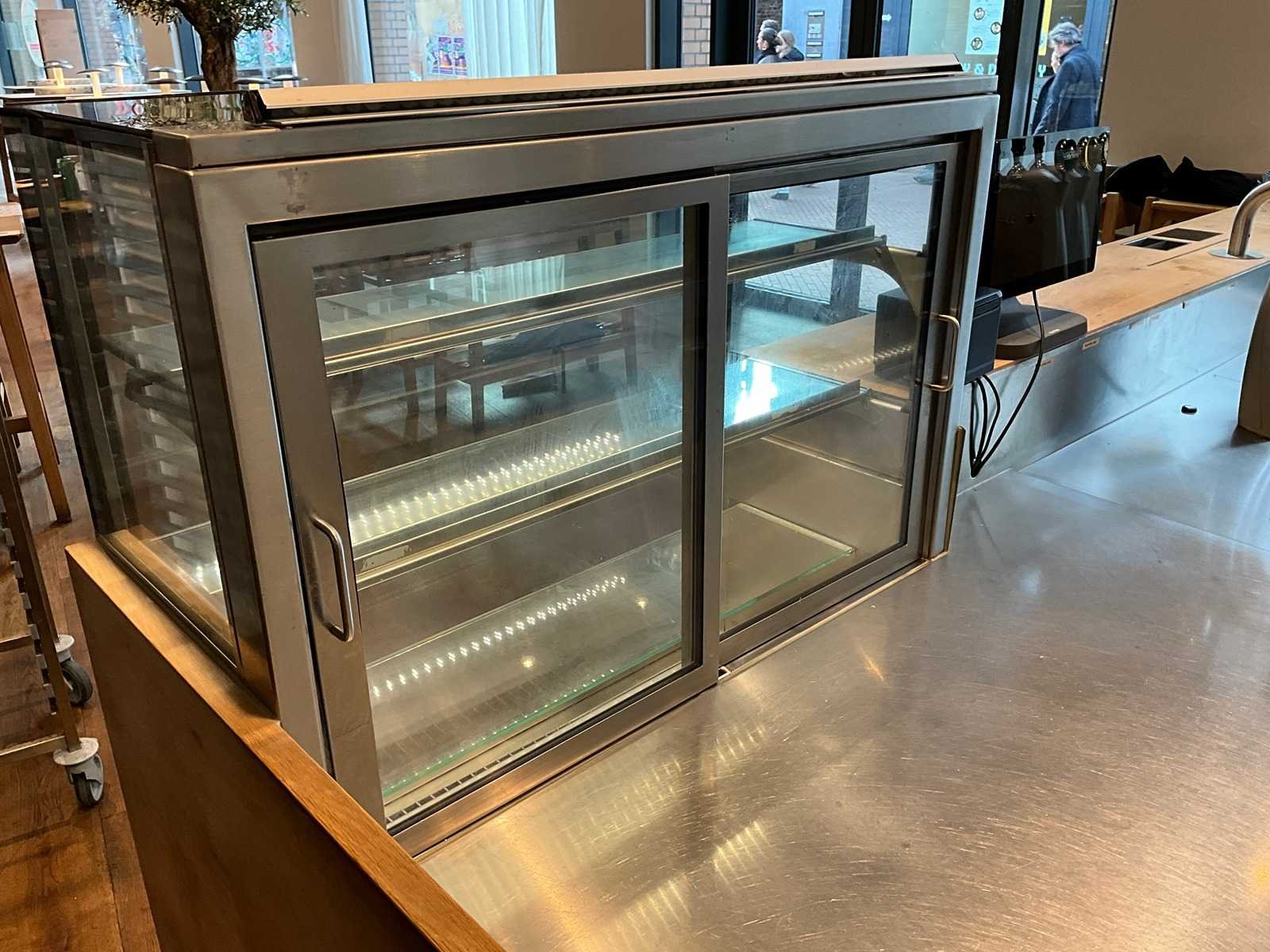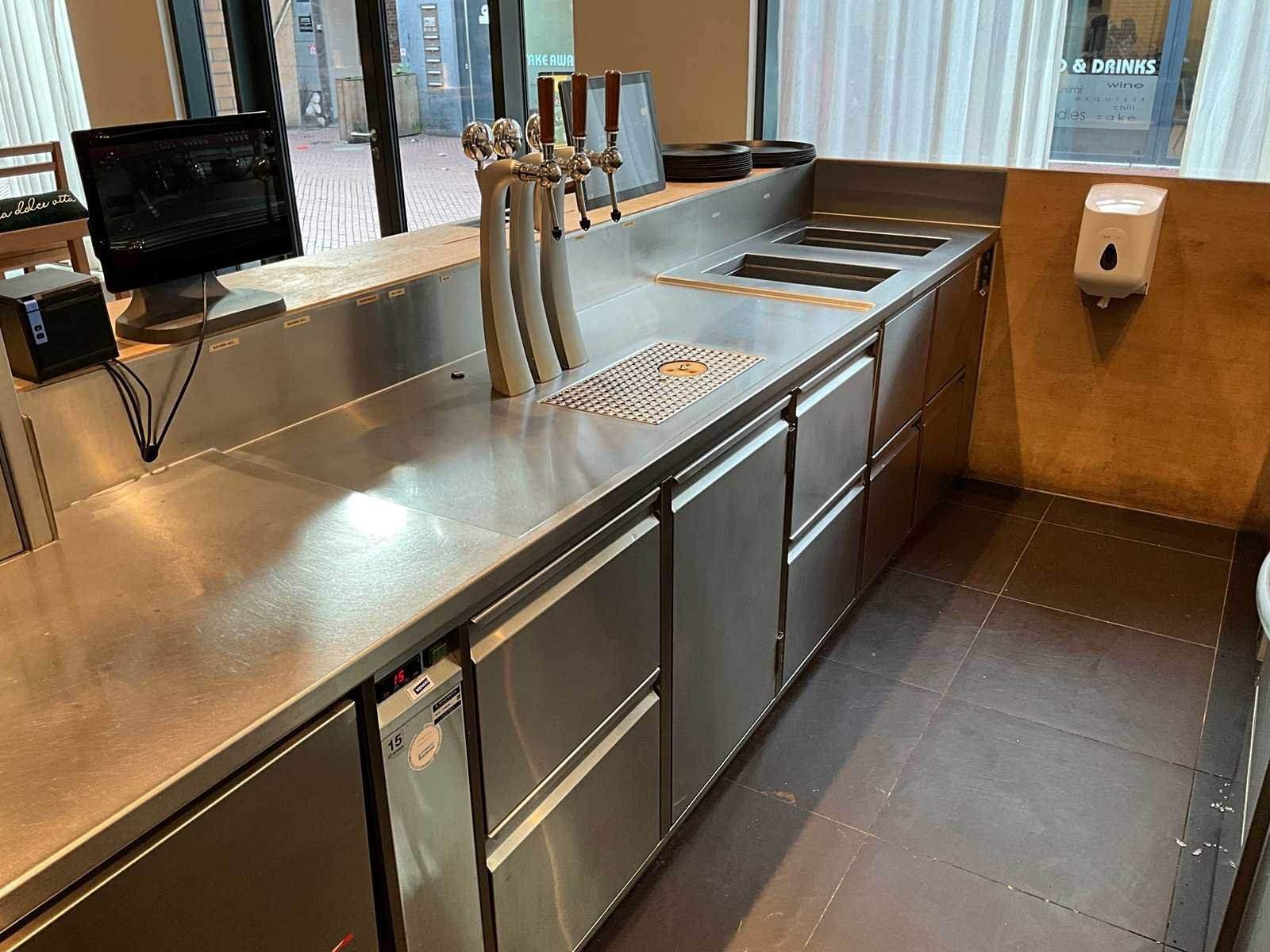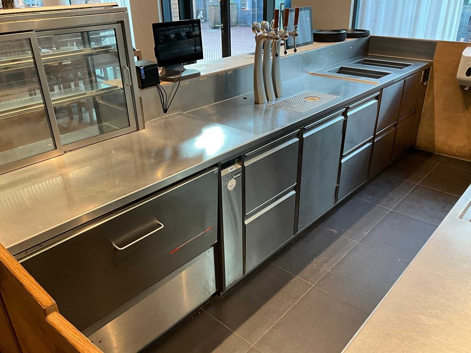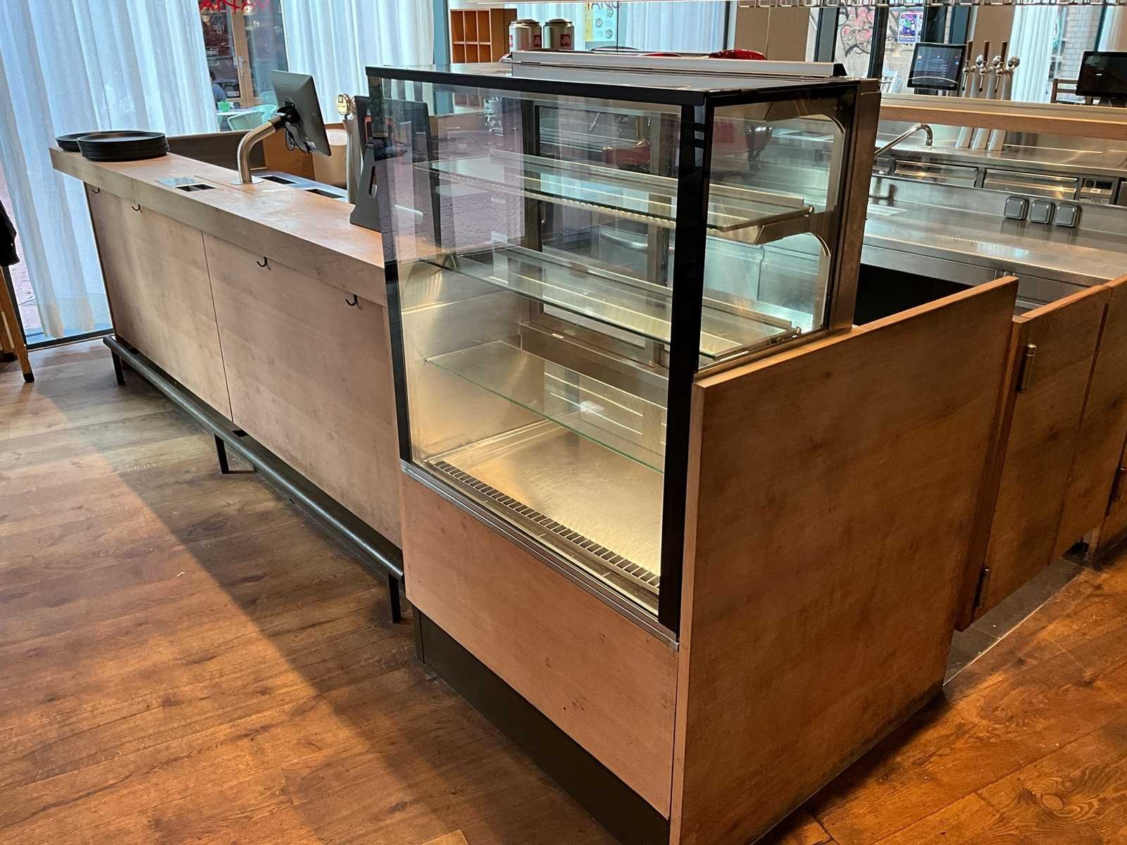 Incl. kassaschermen en bonneprinter. LET OP! Deze kavel maakt onderdeel uit van een combinatie kavel (kavelnummer 1) deze kavel blijft onder gunning totdat de combinatie kavel gesloten is. LET OP! Kavel betreft een apparaat wat aangesloten is op een centraal koelsysteem. Kavel heeft geen eigen koelcompressor. Het centrale koelsysteem is reeds professioneel leeg gepompt. Hiervoor zijn additionele kosten van toepassing. De koper is zelf verantwoordelijk voor het professioneel demonteren van de kavel. Kavel kan aangesloten zijn op het elektra-, water- en/of gasleidingnetwerk. Bekabeling en/of leidingen dienen netjes afgedopt en ordelijk achter gelaten te worden. Schade aan het pand of andere zaken zal op de koper worden verhaald. Wij adviseren u gebruik te maken van de kijkdag om een plan voor demontage op te stellen. Totale afmeting L: 4190mm Totale afmeting Breedte: 1050mm Totale afmeting Hoogte: 1650mm