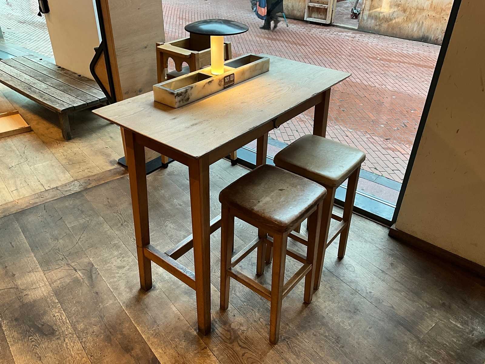 Bartafel met marmeren opbouw en verlichting. Afmeting barkrukken: 37x37x75 cm. De tafel is reeds ontkoppeld van de vloer en elektra. Hiervoor zijn de additionele kosten van toepassing. Merk: Hutten Totale afmeting L: 1200mm Totale afmeting Breedte: 600mm Totale afmeting Hoogte: 1050mm Hout: true