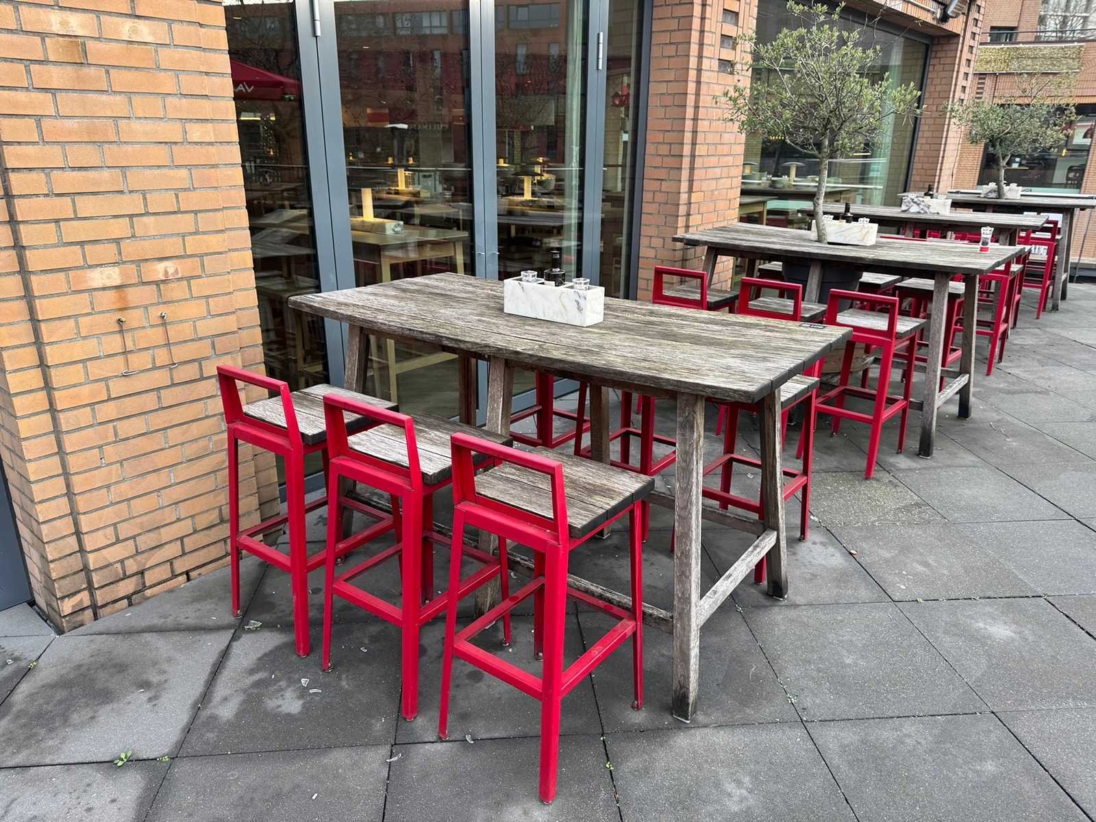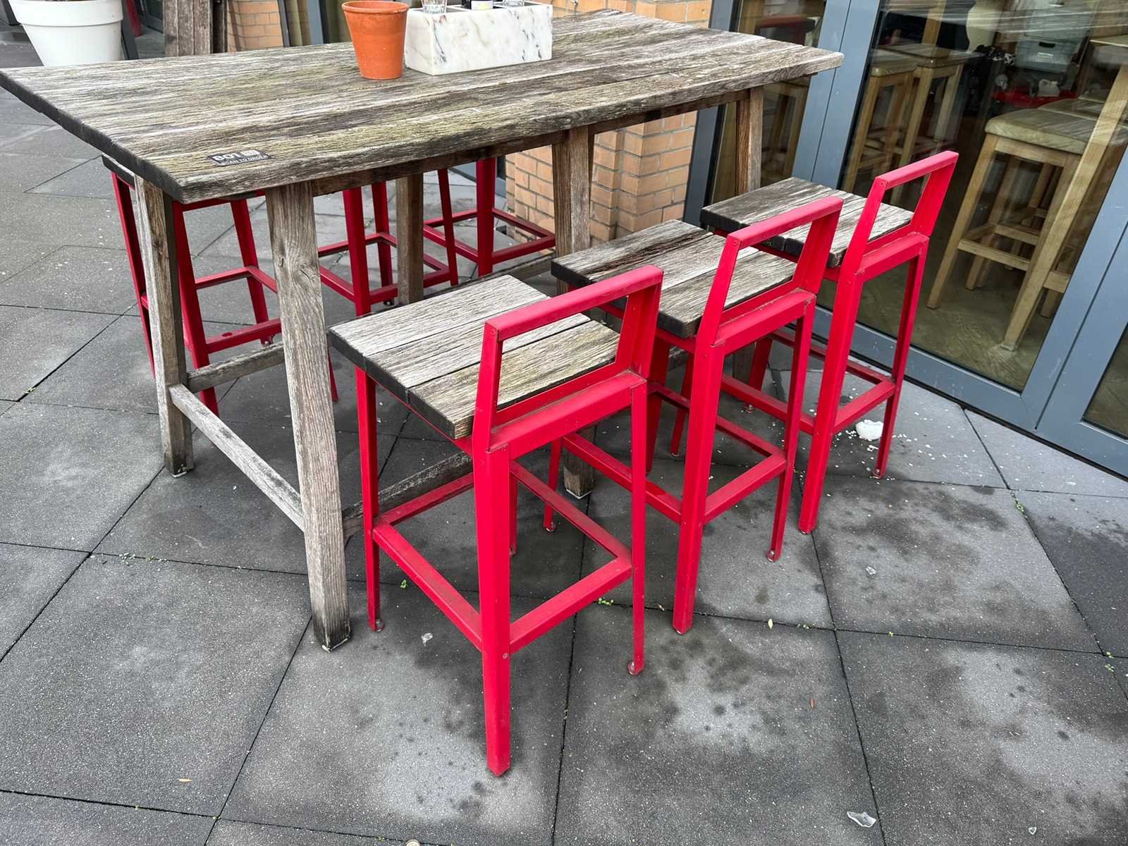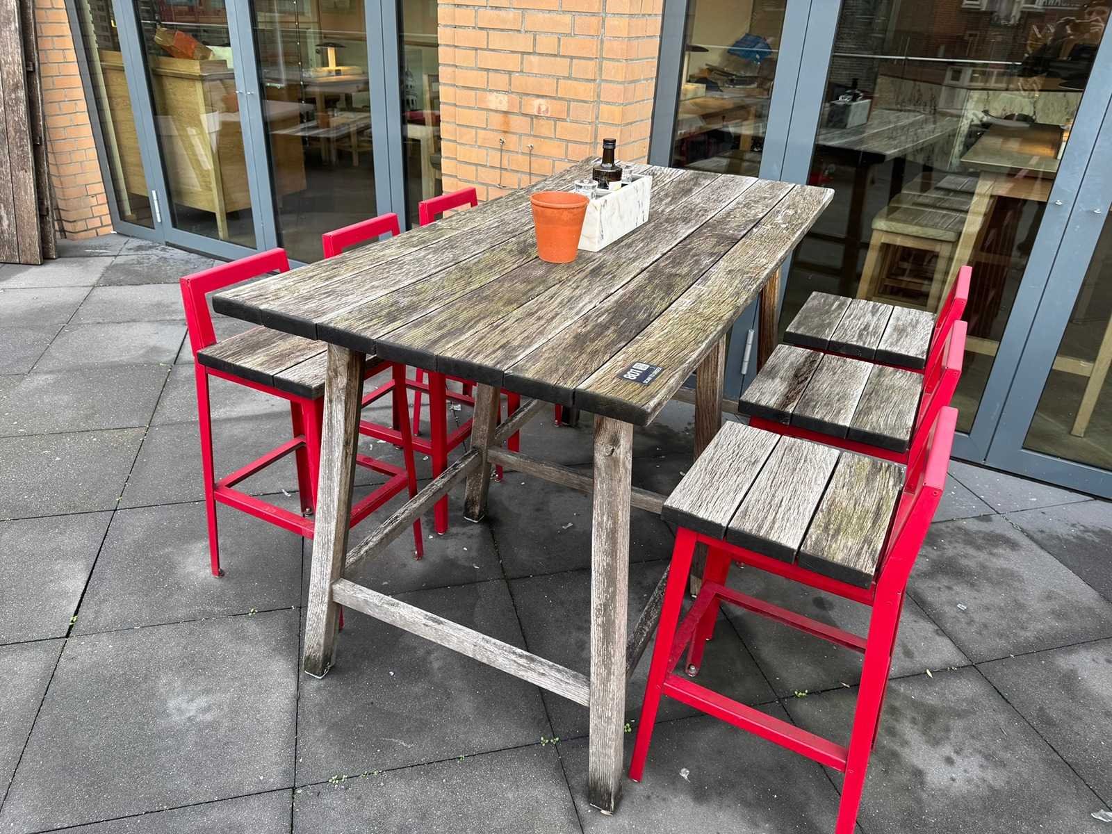 Terras bartafel met 8 barkrukken met rugleuning. Inclusief boompjes. LET OP! Kavel bevindt zich op het dakterras. Merk: Hutten