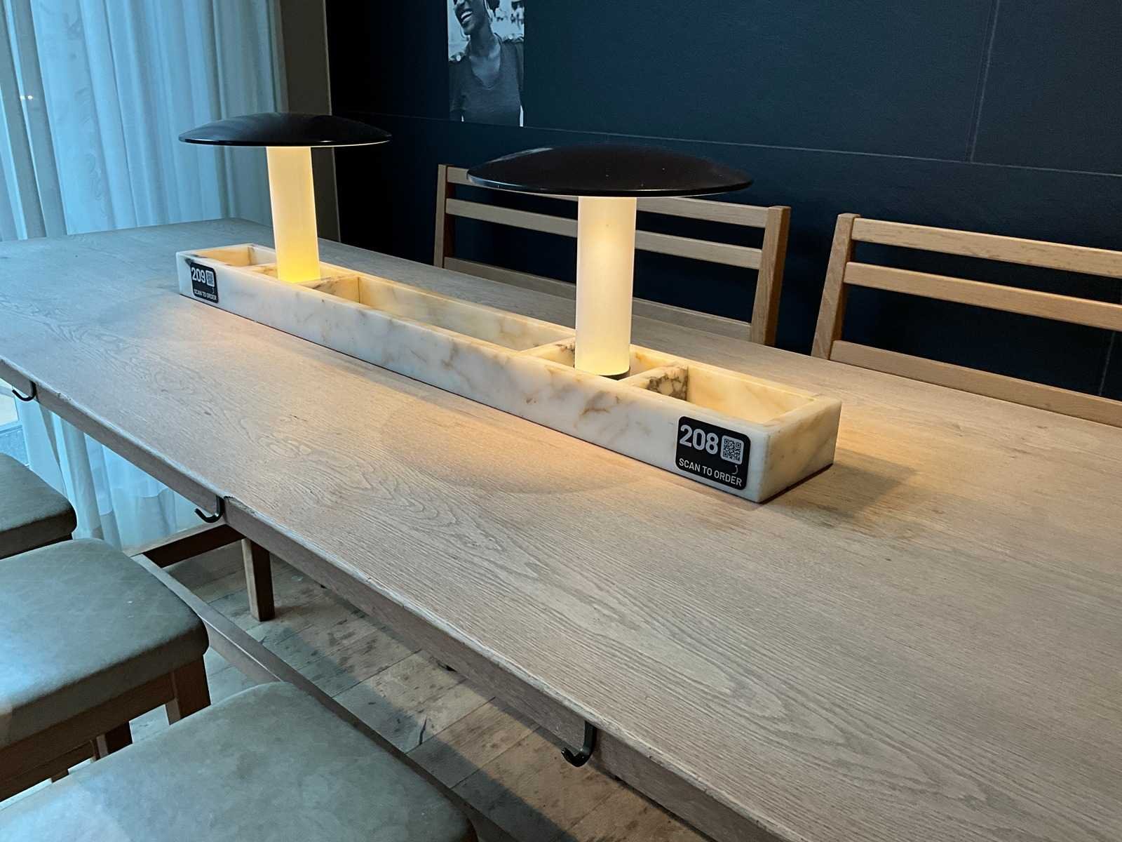 Bartafel met marmeren opbouw en verlichting. Afmeting banken: 120x50x112 cm, zithoogte 75 cm. Afmeting krukken 37x37x75 cm. De tafel is reeds ontkoppeld van de vloer en elektra. Hiervoor zijn de additionele kosten van toepassing. Merk: Hutten Totale afmeting L: 2400mm Totale afmeting Breedte: 800mm Totale afmeting Hoogte: 1050mm Hout: true