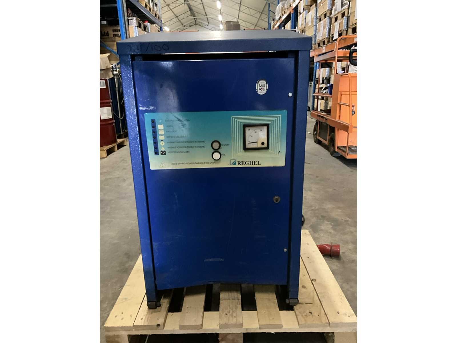3~Fase Merk: Reghel Type: 24100 Serienummer: 03000102 Spanning: 24V Laadstroom: 100A Aansluiting: 380V Totale afmeting L: 500mm Totale afmeting Breedte: 430mm Totale afmeting Hoogte: 900mm