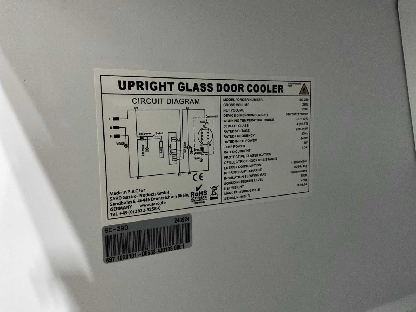 2024 saro sc-280 glasdeur koelkast