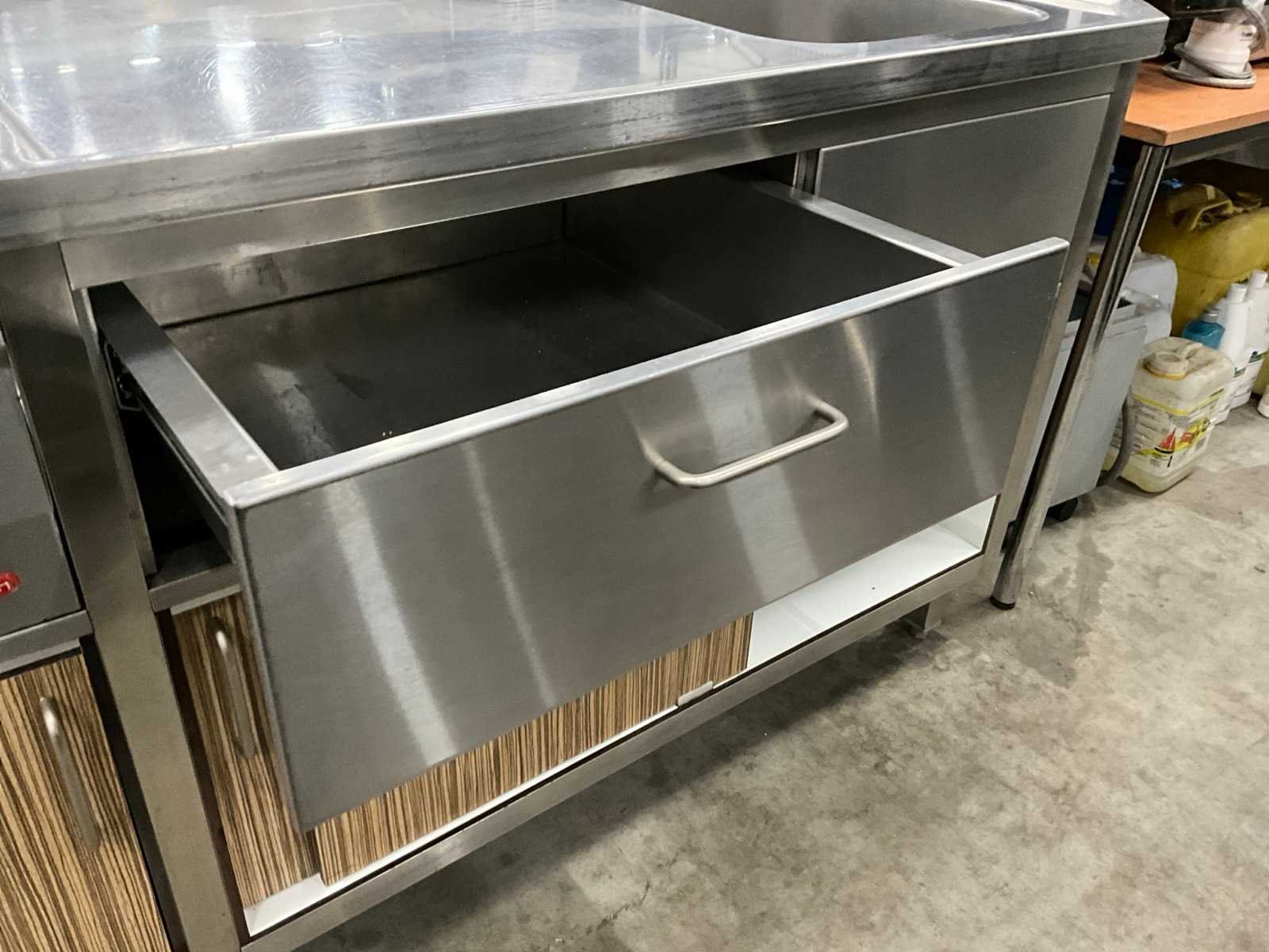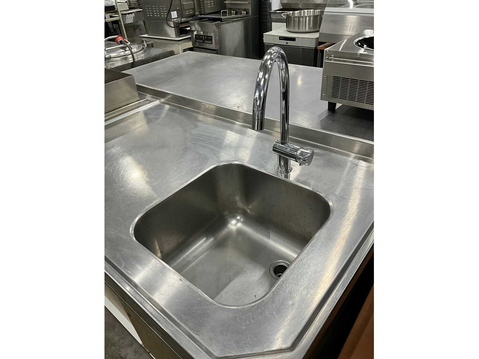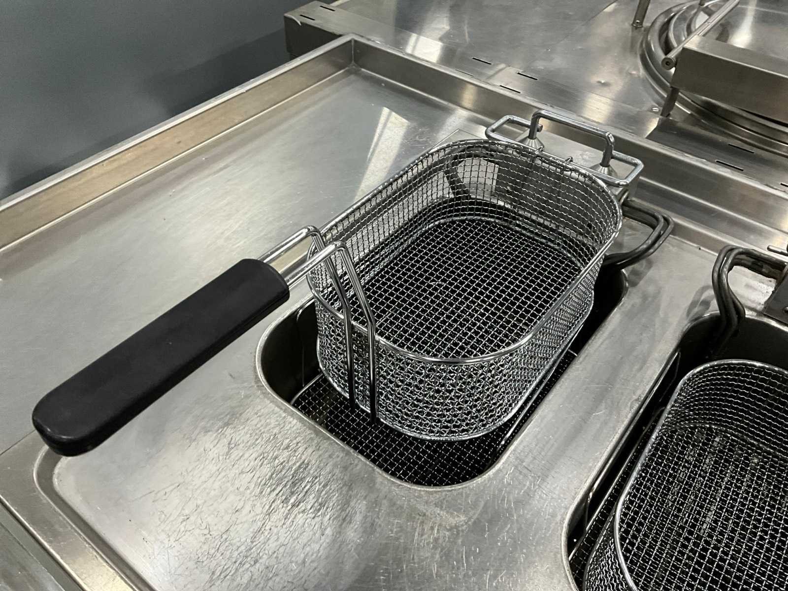 Voorzien van dubbele friteuse, bakplaat en spoelbak met kraan. Merk: Küppersbusch Totale afmeting Breedte: 2860mm Totale afmeting L: 760mm Totale afmeting Hoogte: 900mm