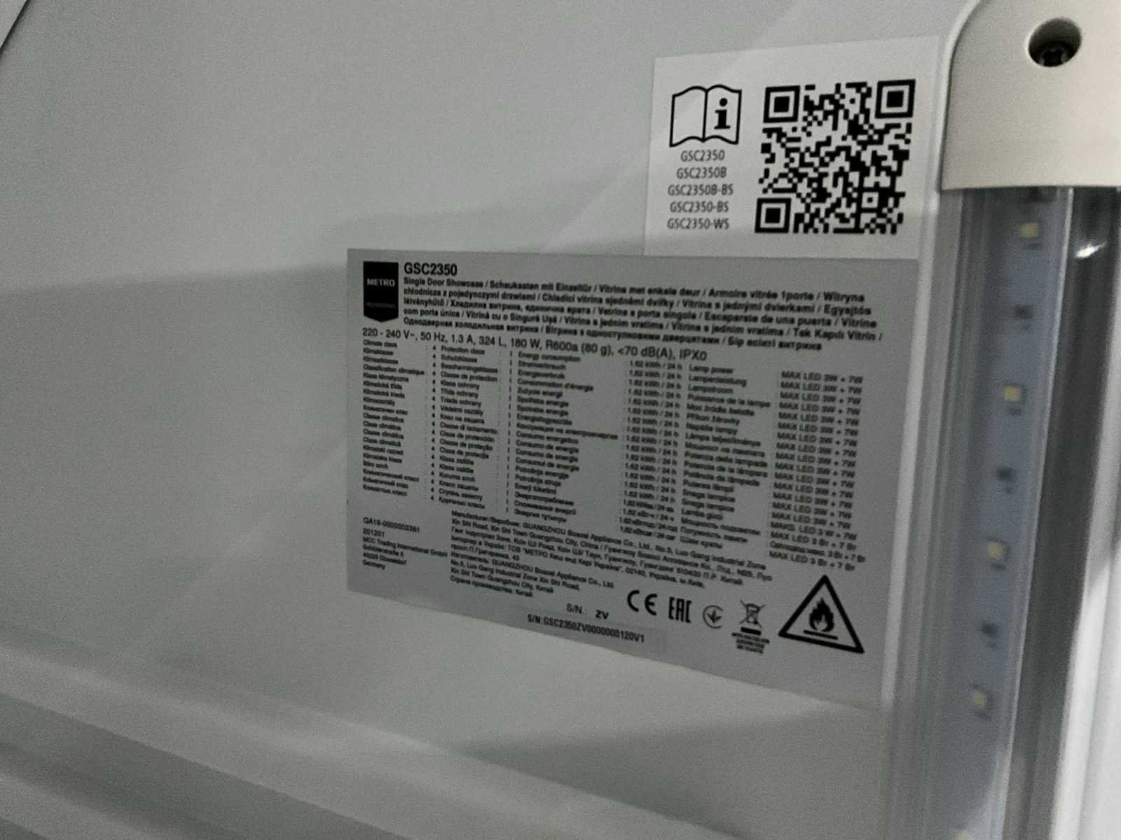 Ongebruikt; 180 watt. Merk: Metro Type: GSC2350 Capaciteit.: 324l Totale afmeting L: 62cm Totale afmeting Breedte: 64cm Totale afmeting Hoogte: 202cm