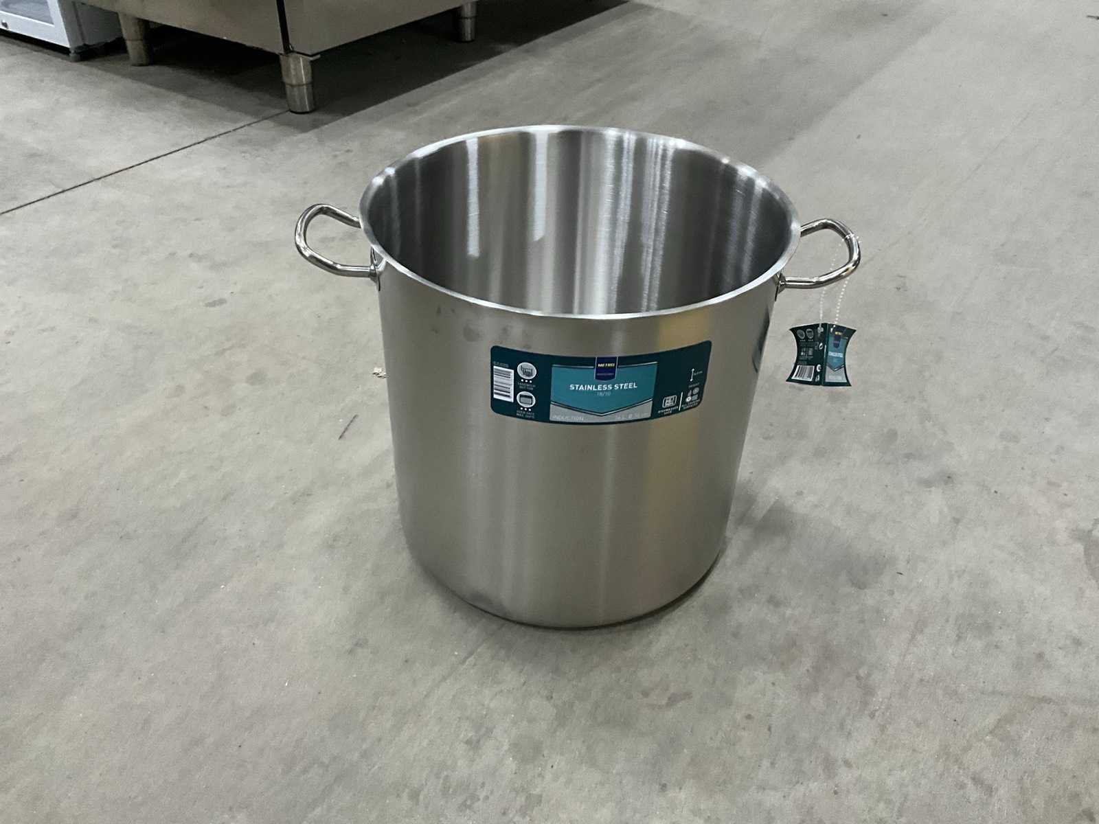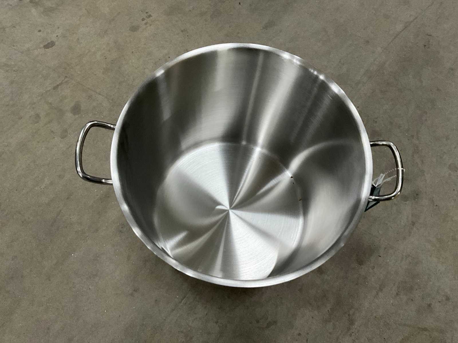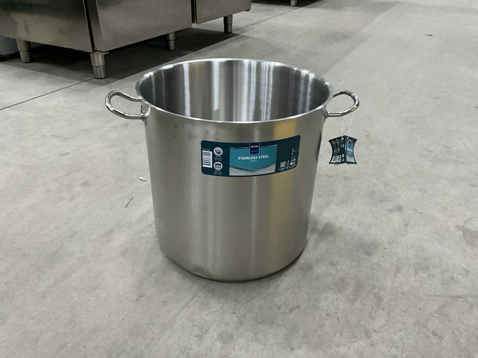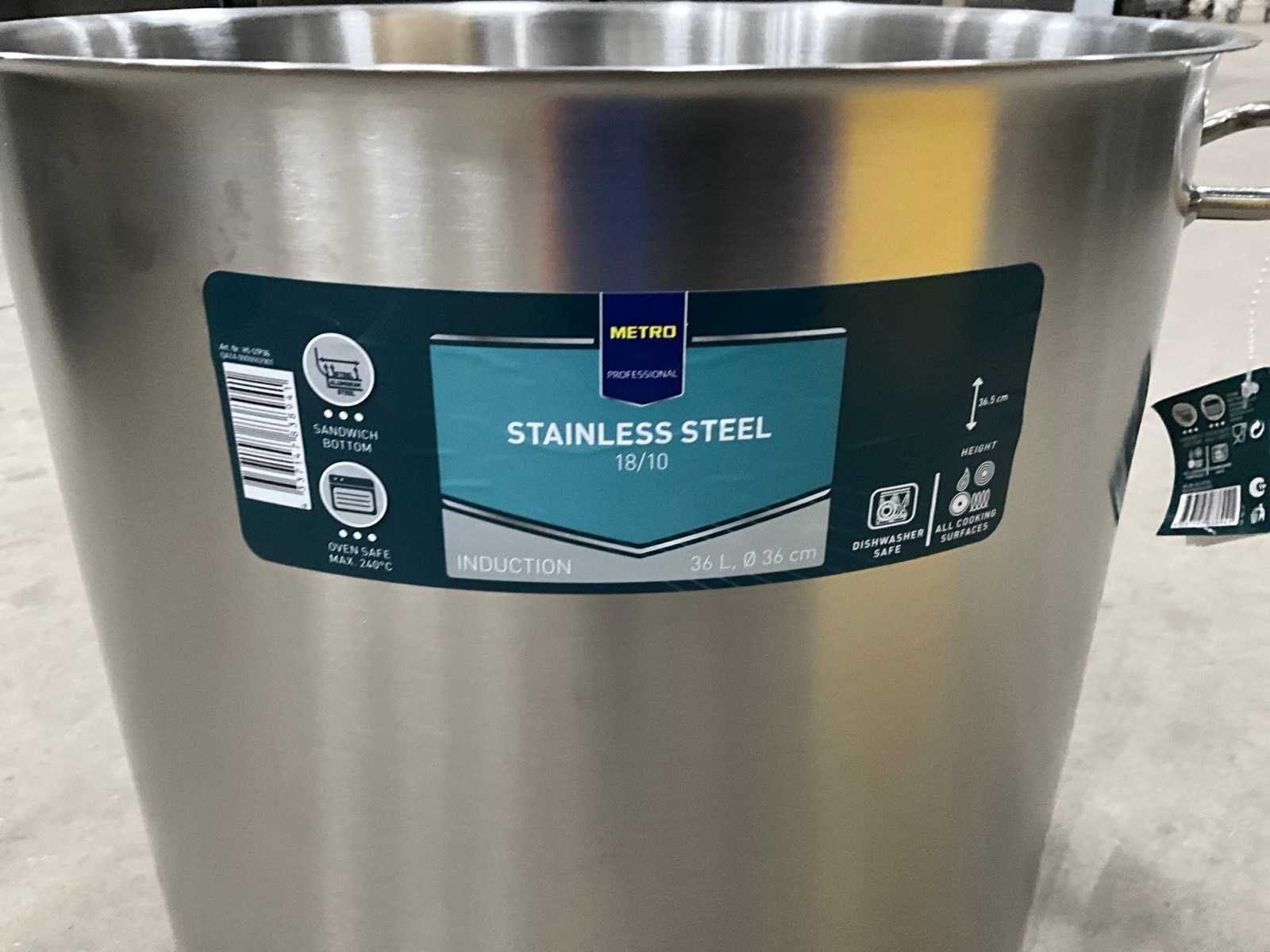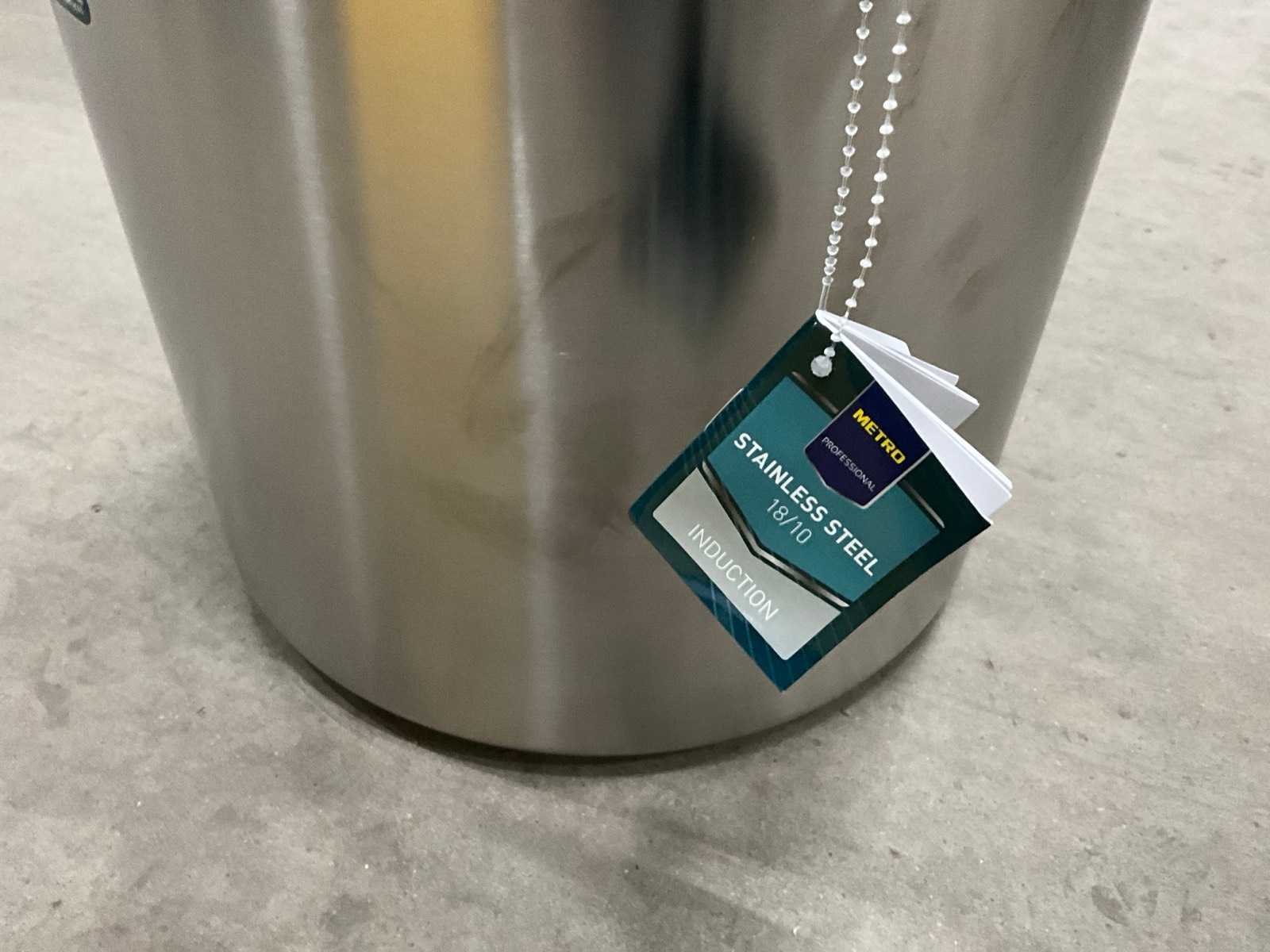 Ongebruikt; diam. 38 cm. ; 36 liter inhoud; beschadiging in bodem. Merk: Metro Materiaal: rvs Totale afmeting Hoogte: 37