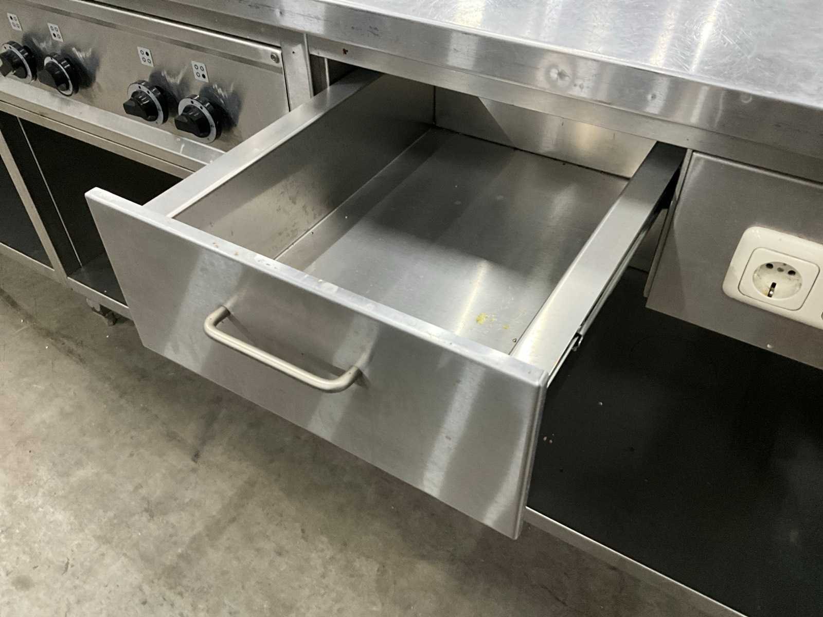 Voorzien van 2 spoelbak met kraan ; 4-pits gasfornuis Materiaal: rvs Totale afmeting Breedte: 359mm Totale afmeting L: 70mm Totale afmeting Hoogte: 90mm