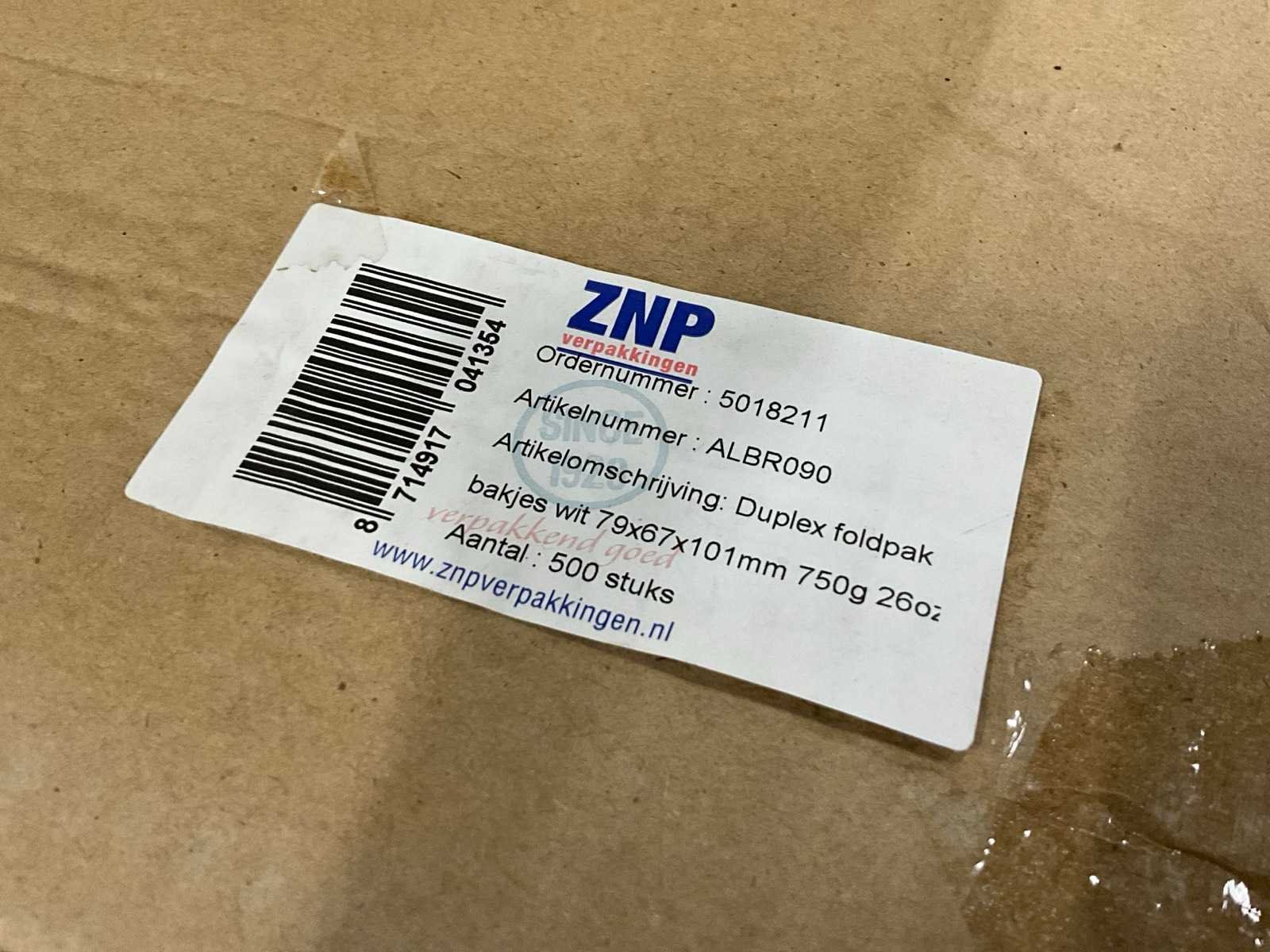 Ongebruikt; 9 dozen x 500 stuks ; totaal 4500 stuks Merk: ZNP Lengte: 8cm Breedte: 7cm Hoogte: 10cm