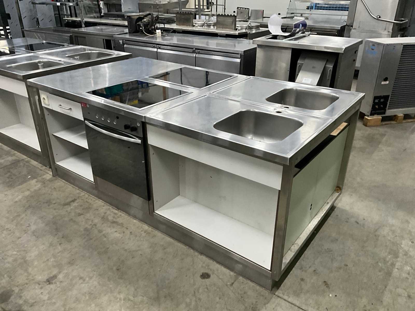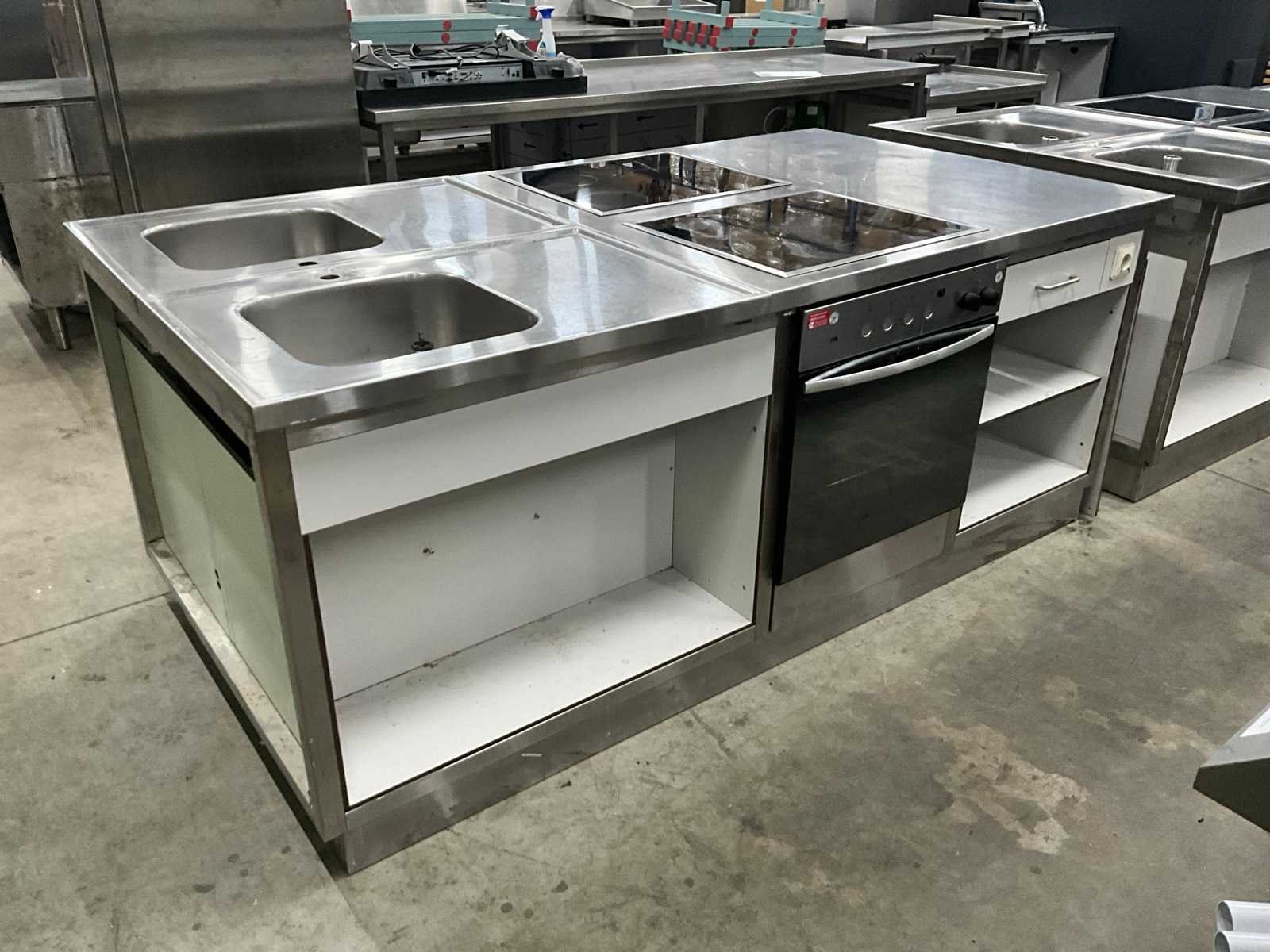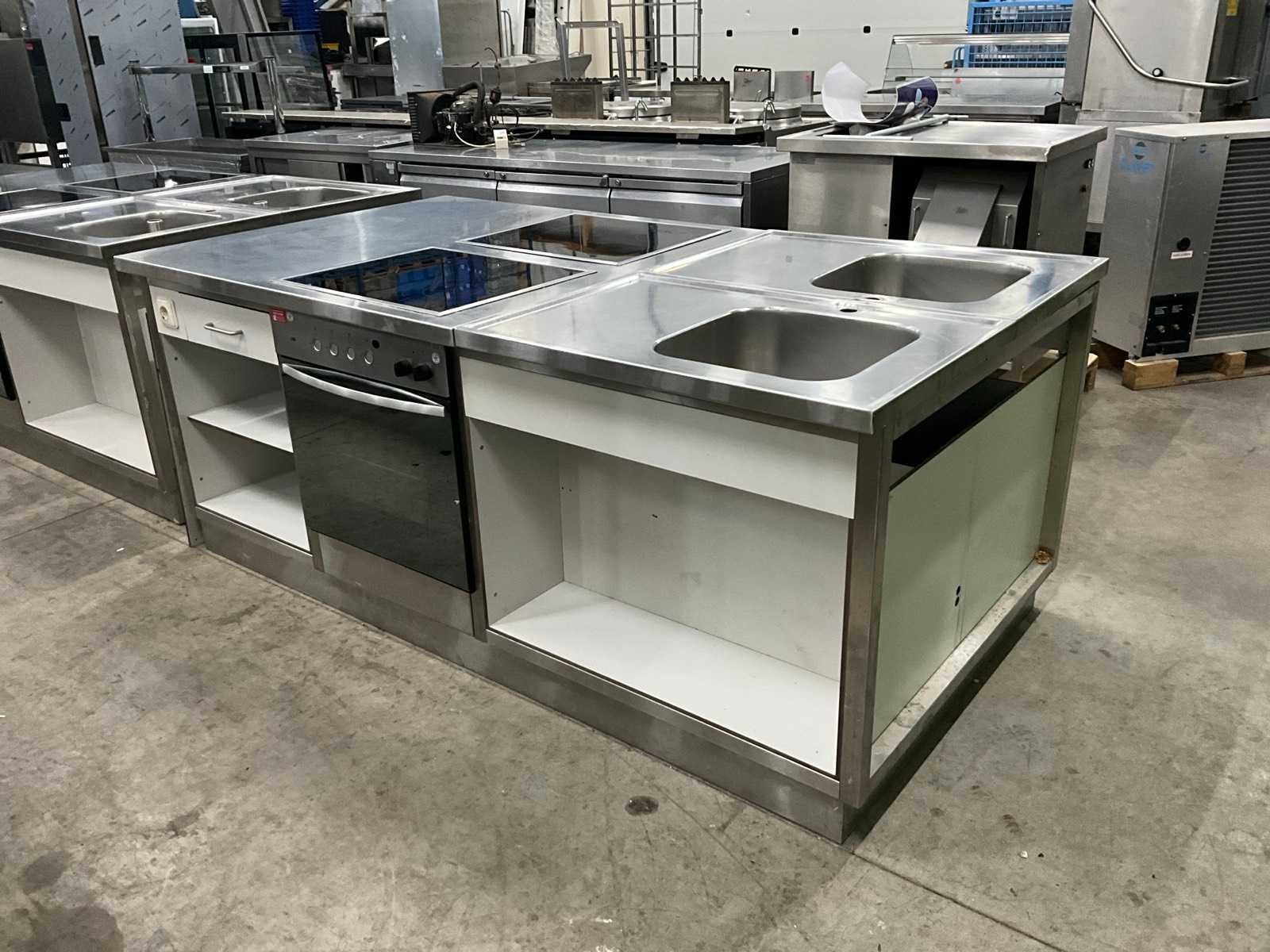 Voorzien van Bosch 4-pits kookplaat; Etna inbouw oven en dubbele spoelbak. Merk: Bosch & Etna Model: A 7300 Materiaal: rvs Totale afmeting Breedte: 2200mm Totale afmeting L: 1200mm Totale afmeting Hoogte: 900mm