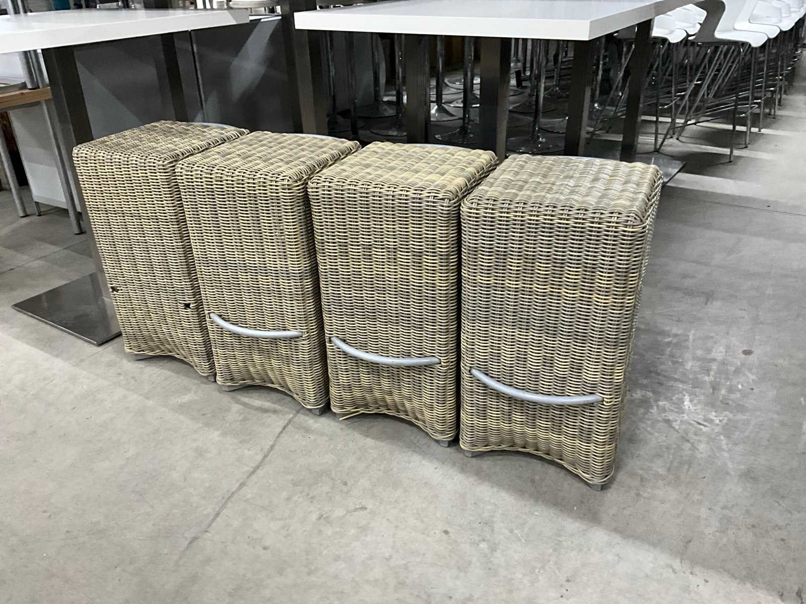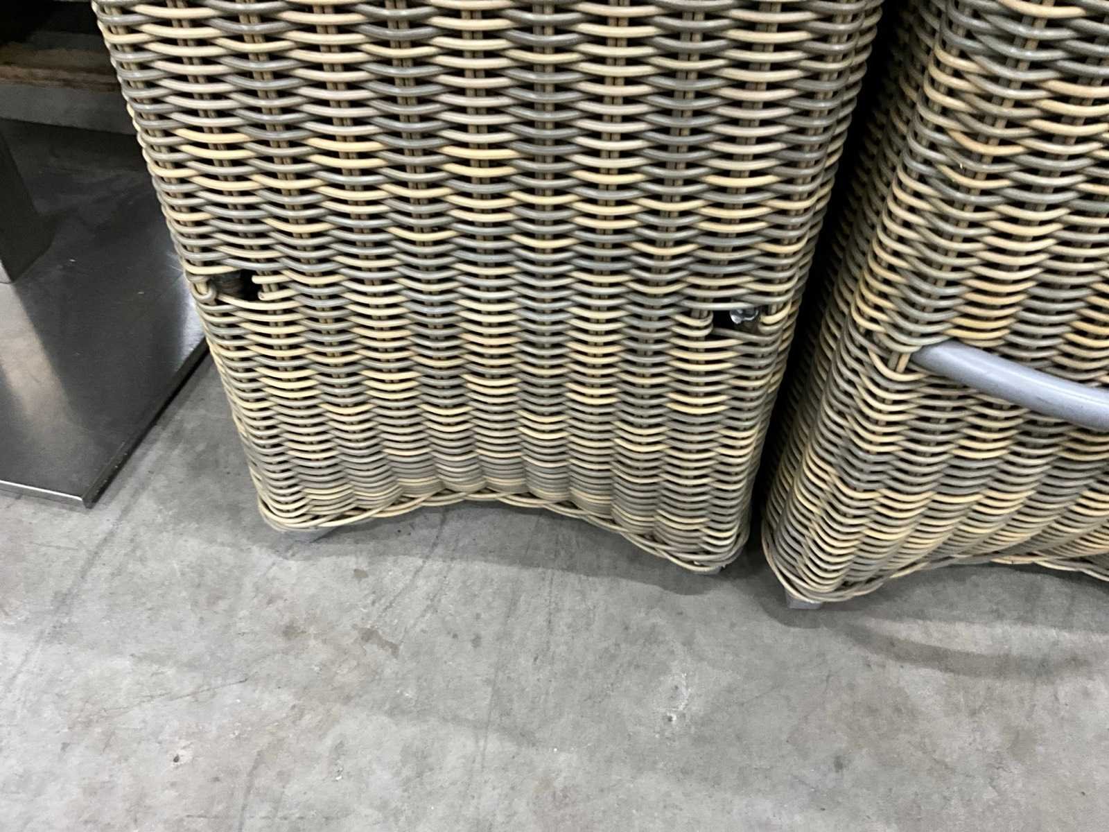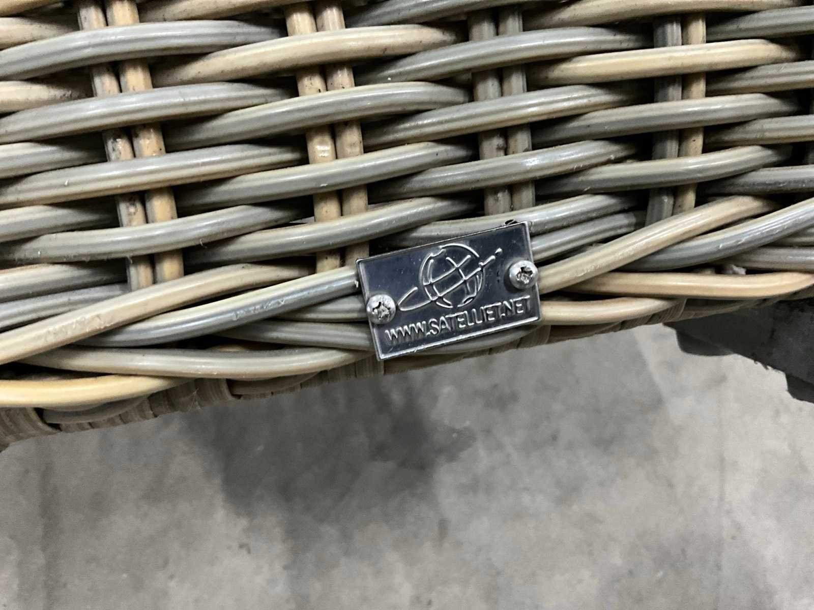 Bij 1 stoel ontbreekt voetensteun. Merk: Satelliet Lengte: 42cm Breedte: 42cm Hoogte: 81cm