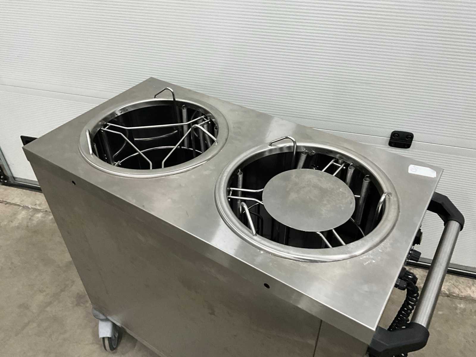 Maximaal diameter bord 25cm Merk: Bourgeat Type: Chauffant N/V 2 silos Totale afmeting L: 98cm Totale afmeting Breedte: 47cm Totale afmeting Hoogte: 110cm Rvs: true Mobiel: true Regelbare thermostaat: true Aansluiting: 230V Eigen gewicht: 160kg