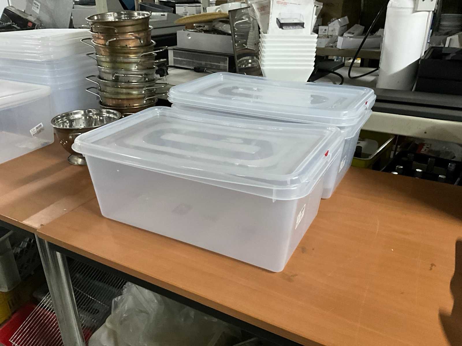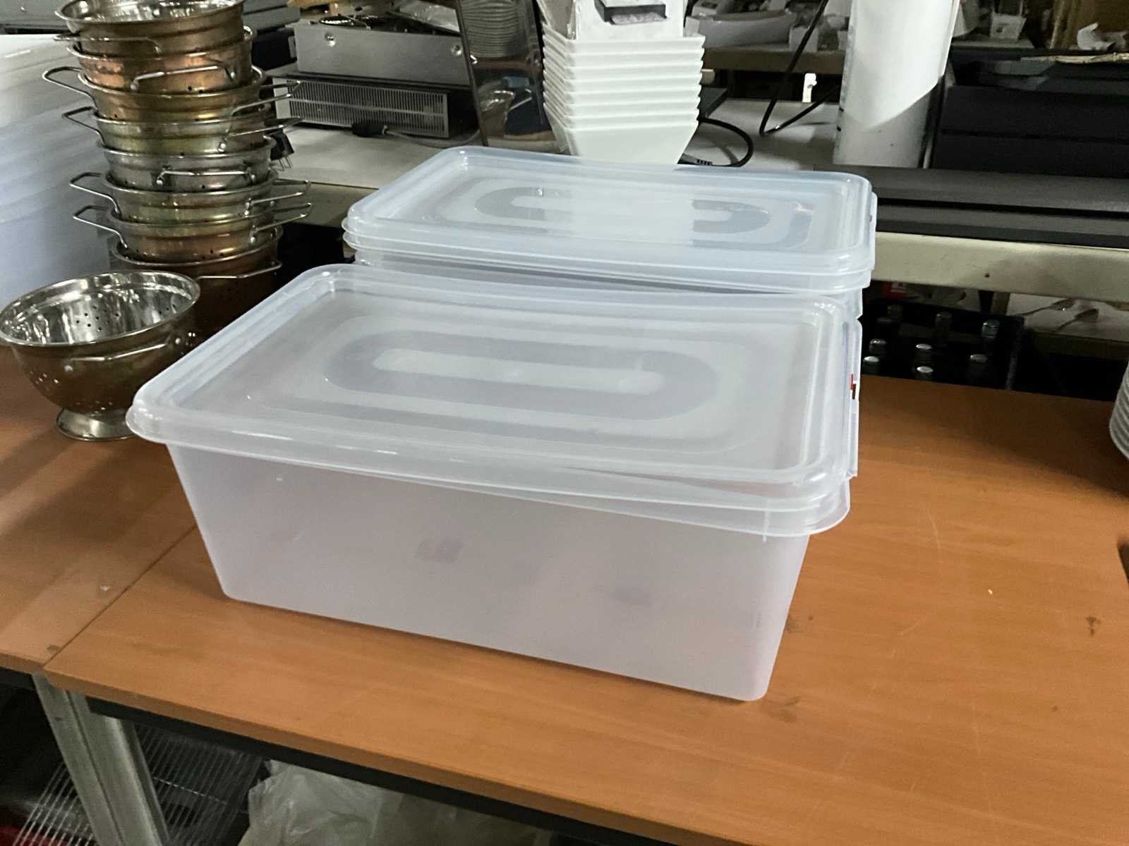 Ongebruikt; deksels gescheurd. Merk: Denox Hoogte: 20cm Materiaal: kunststof