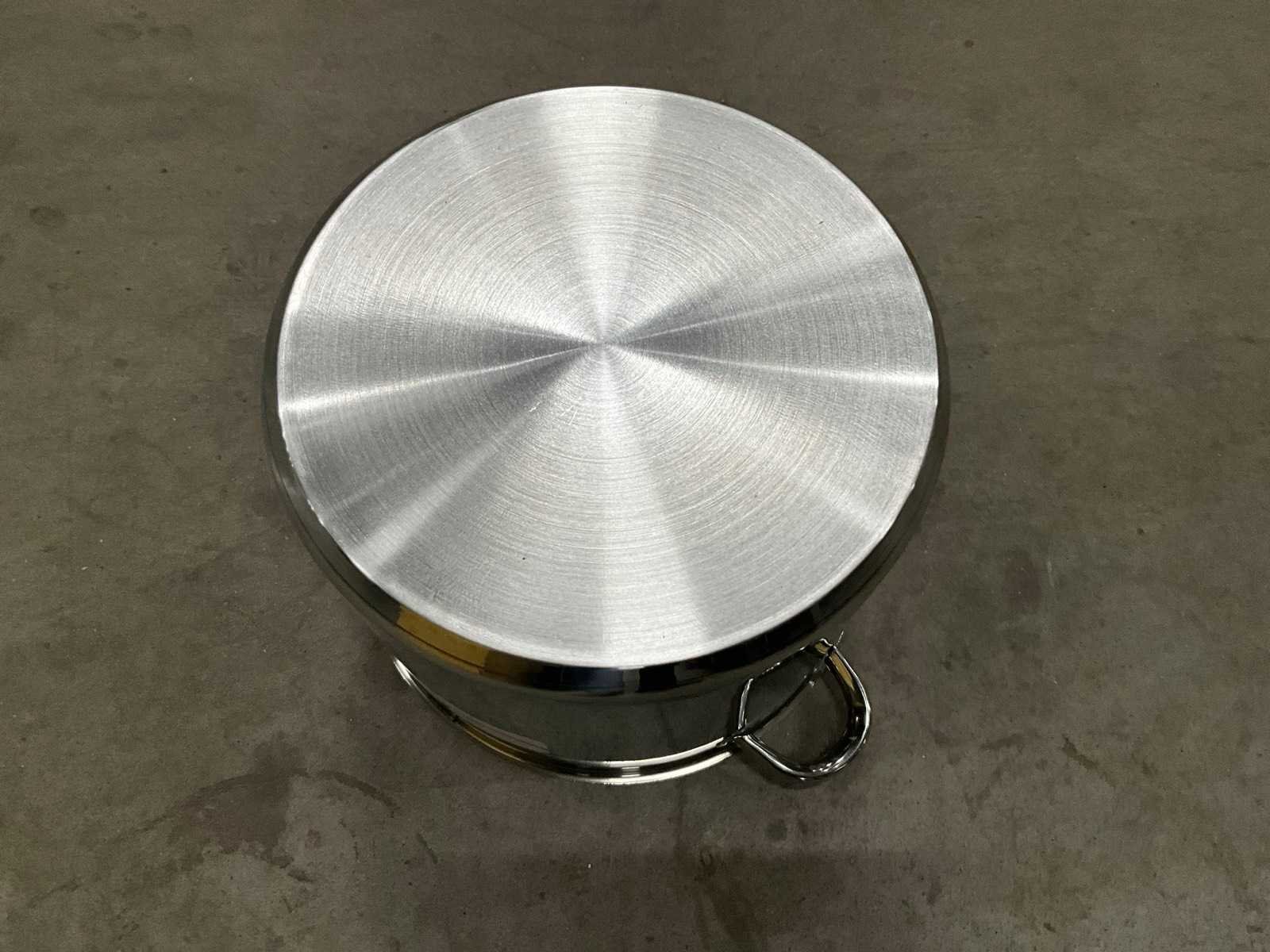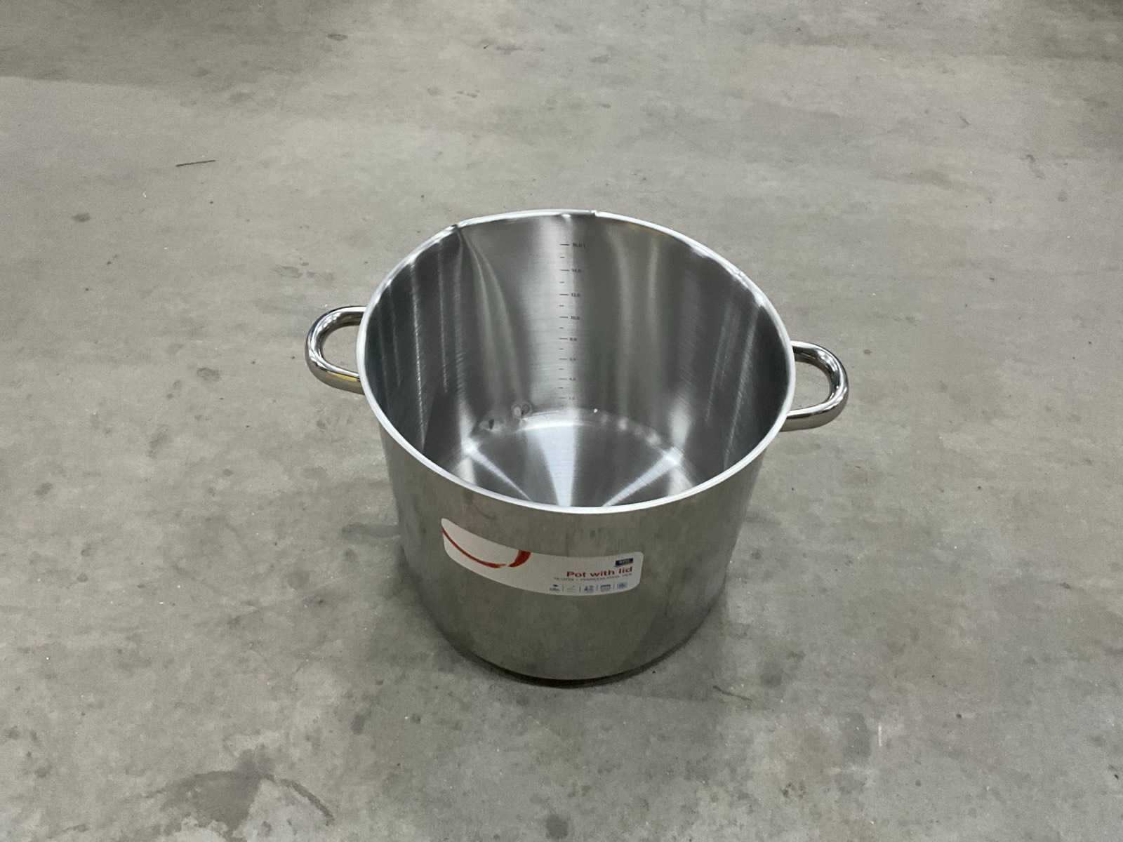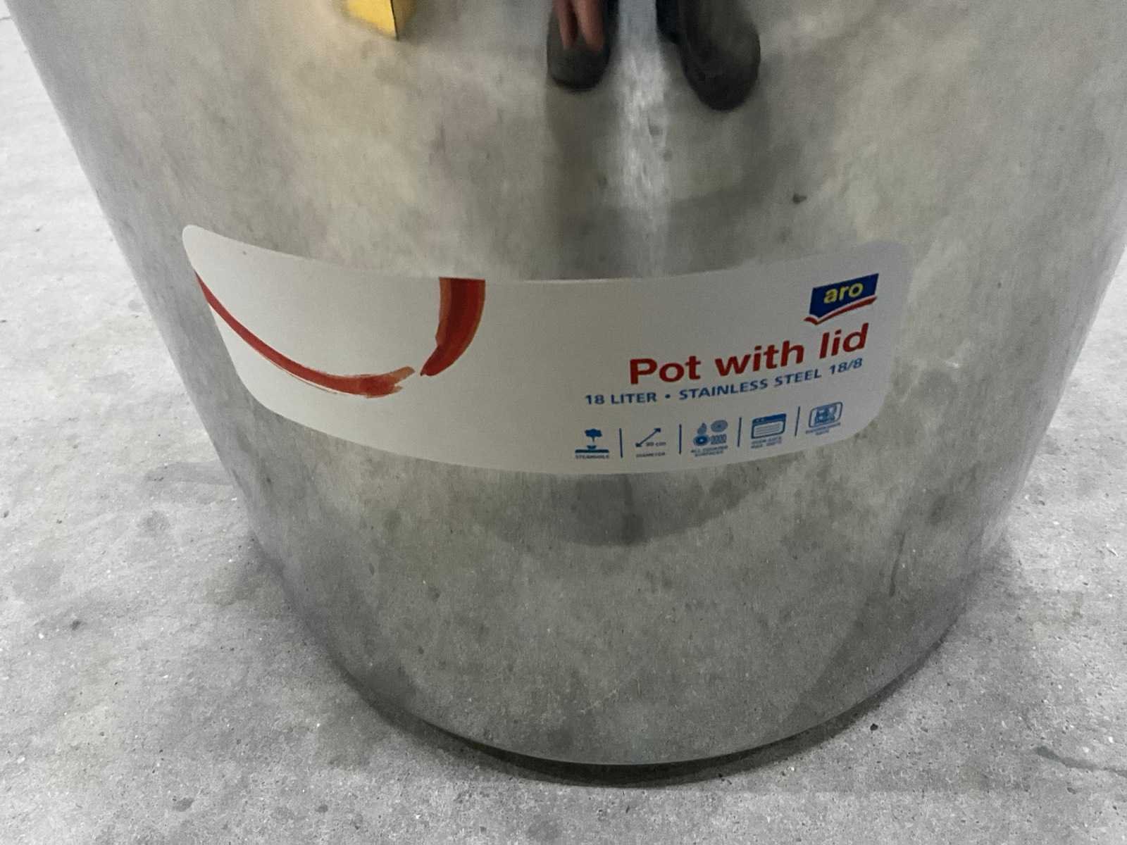 Ongebruikt; diam. 32 cm. ; 18 liter inhoud; beschadiging in rand Merk: Aro Materiaal: rvs Totale afmeting Hoogte: 26