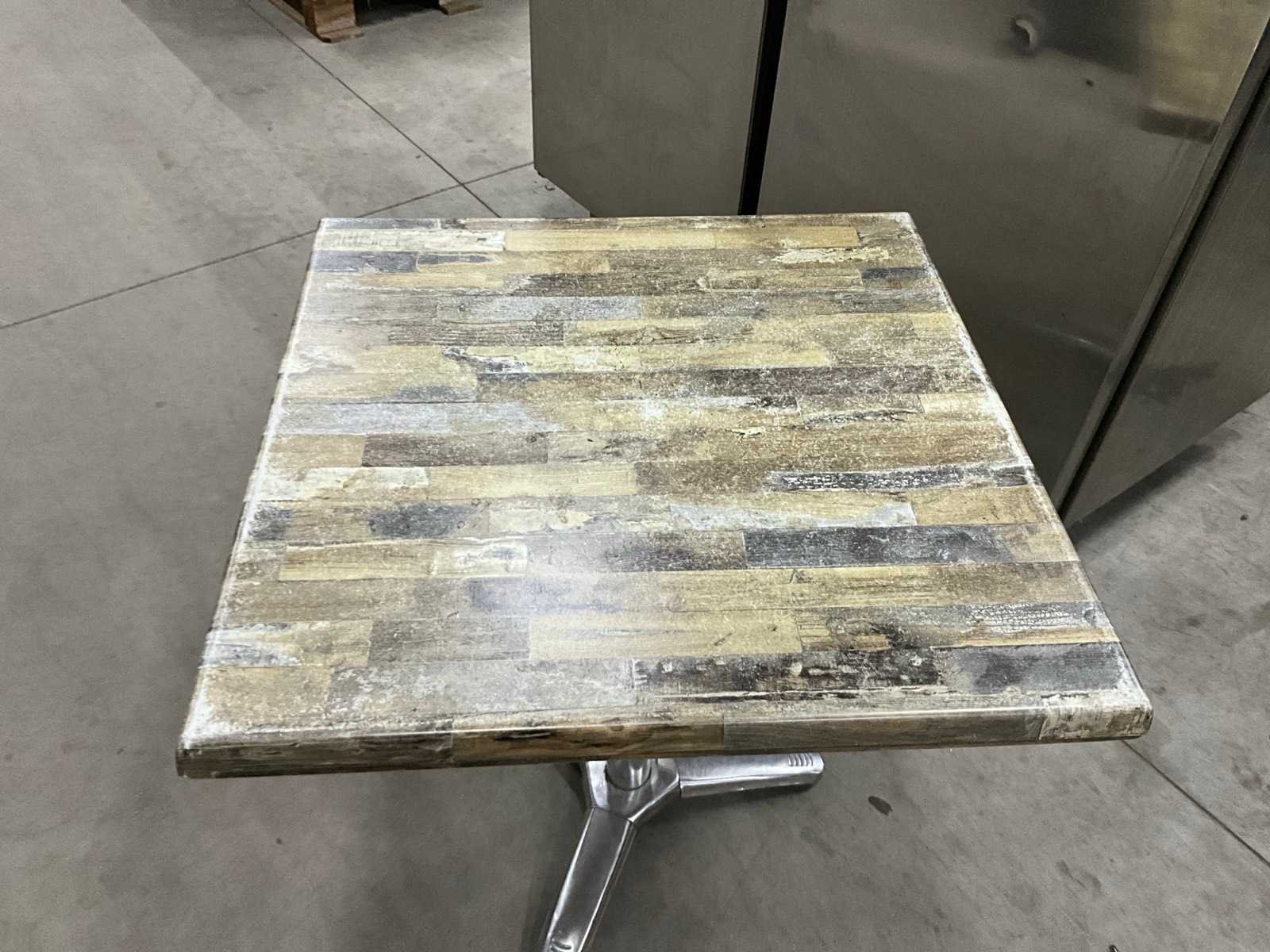 Lengte: 70cm Breedte: 70cm Hoogte: 74cm Materiaal: rvs / hout