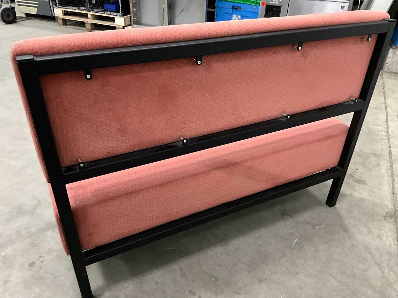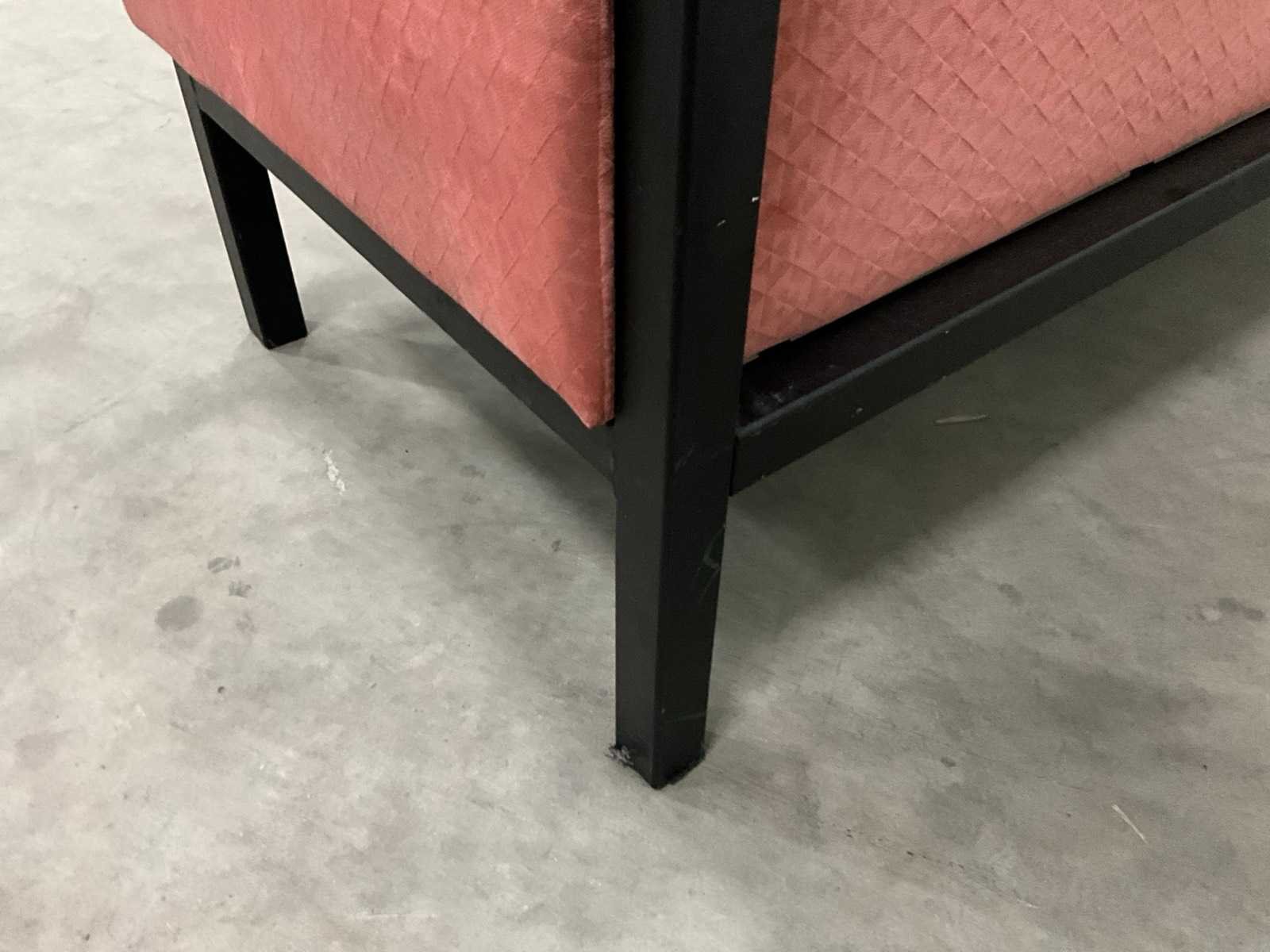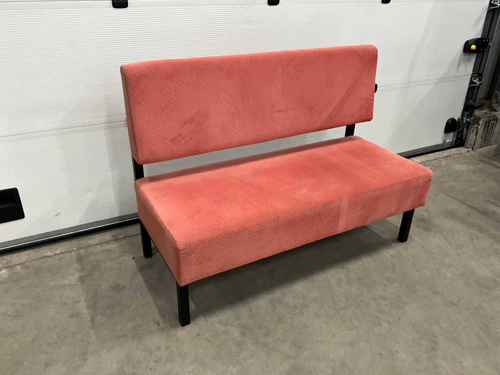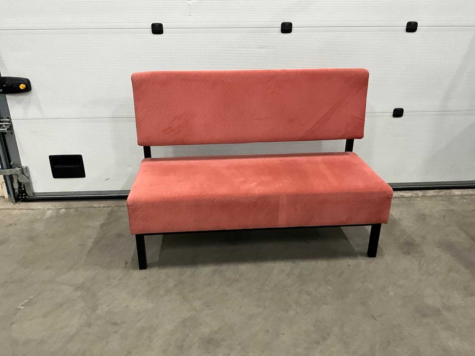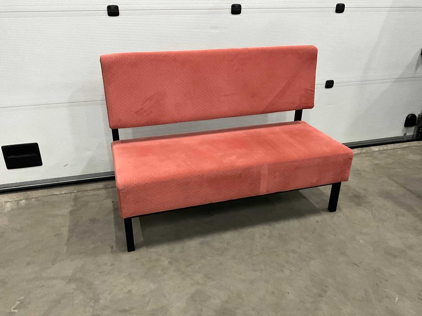 Stofbekleed; zithoogte 480 mm. Totale afmeting L: 1450mm Totale afmeting Breedte: 650mm Totale afmeting Hoogte: 1030mm Metaal: true