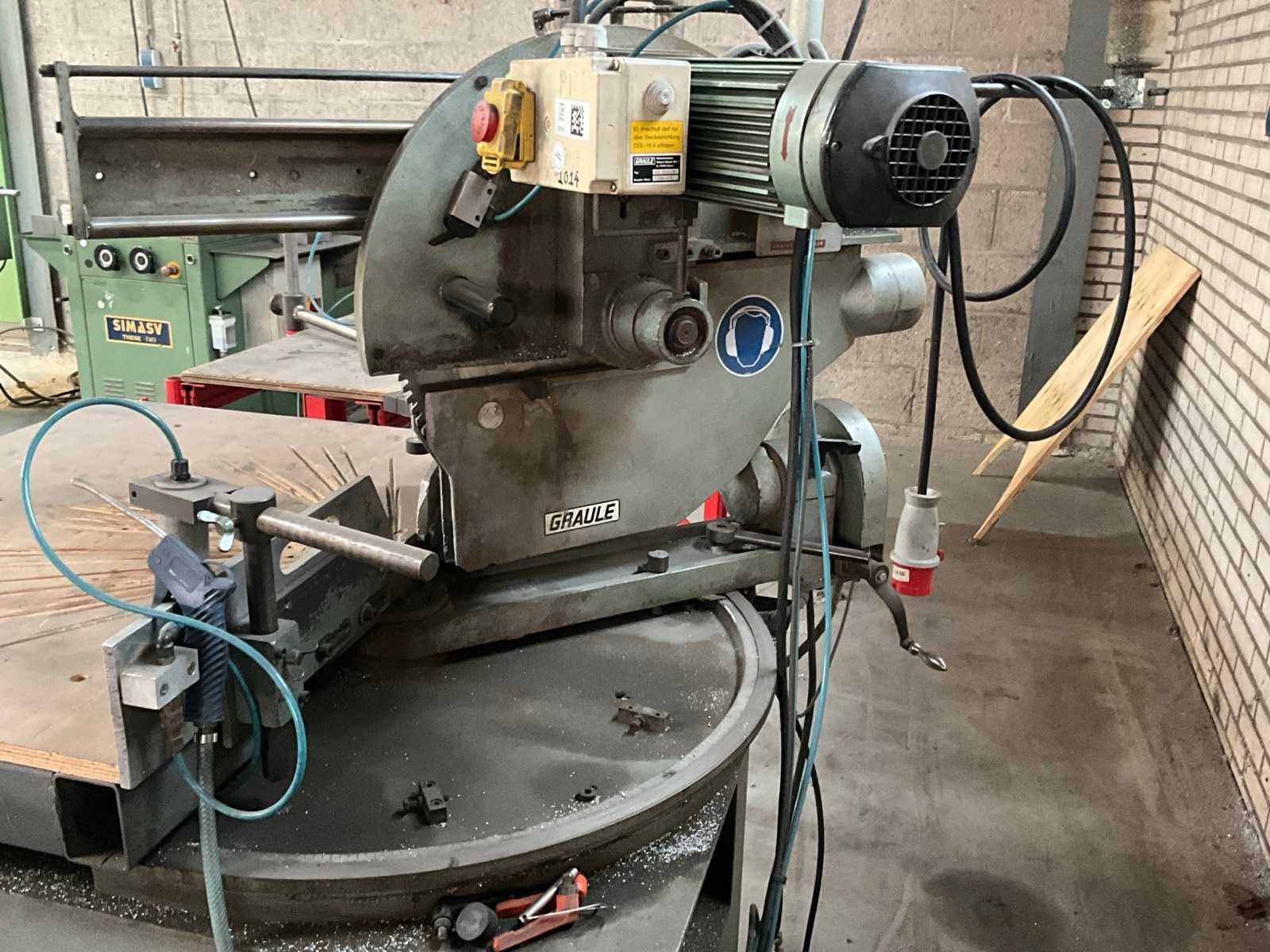 Graule verstek afkortcirkelzaagmachine v.v. aan- uitvoertafel