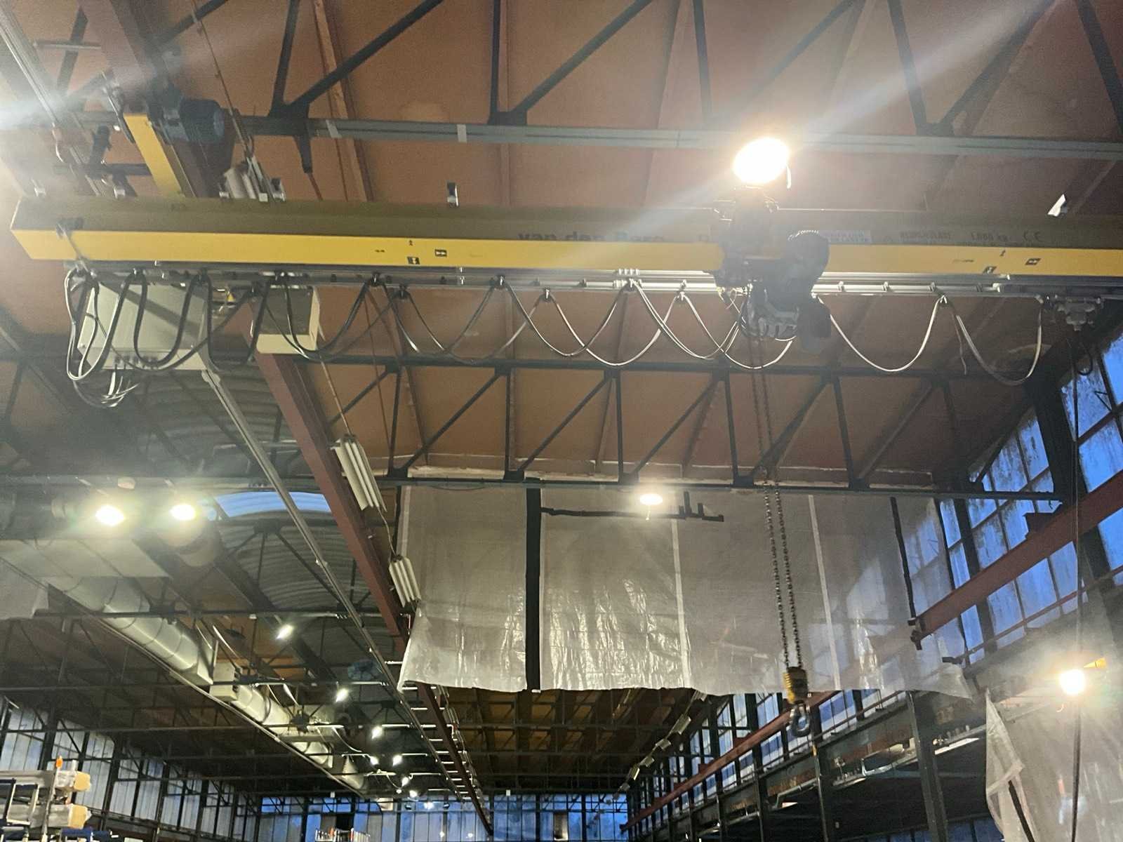 Overspanning kraanbalk: 8,75 meter Kraanbaan lengte: 55 meter m1 Loopcat v.v. kettingtakel Hoogte tot onderkant kraanbalk: ca 4,5 meter Onderhoudsdocumentatie aanwezig Voor vragen mail naar: luuk@handelspracht.nl De kavel dient op professionele wijze gedemonteerd te worden. Schade aan pand en eigendommen worden verhaald op de koper. Wij adviseren je om naar de kijkdag te komen. Merk: Demag Type: 16954201 Bouwjaar: 2005 Overspanning: 7.85m Hijsvermogen: 1000kg