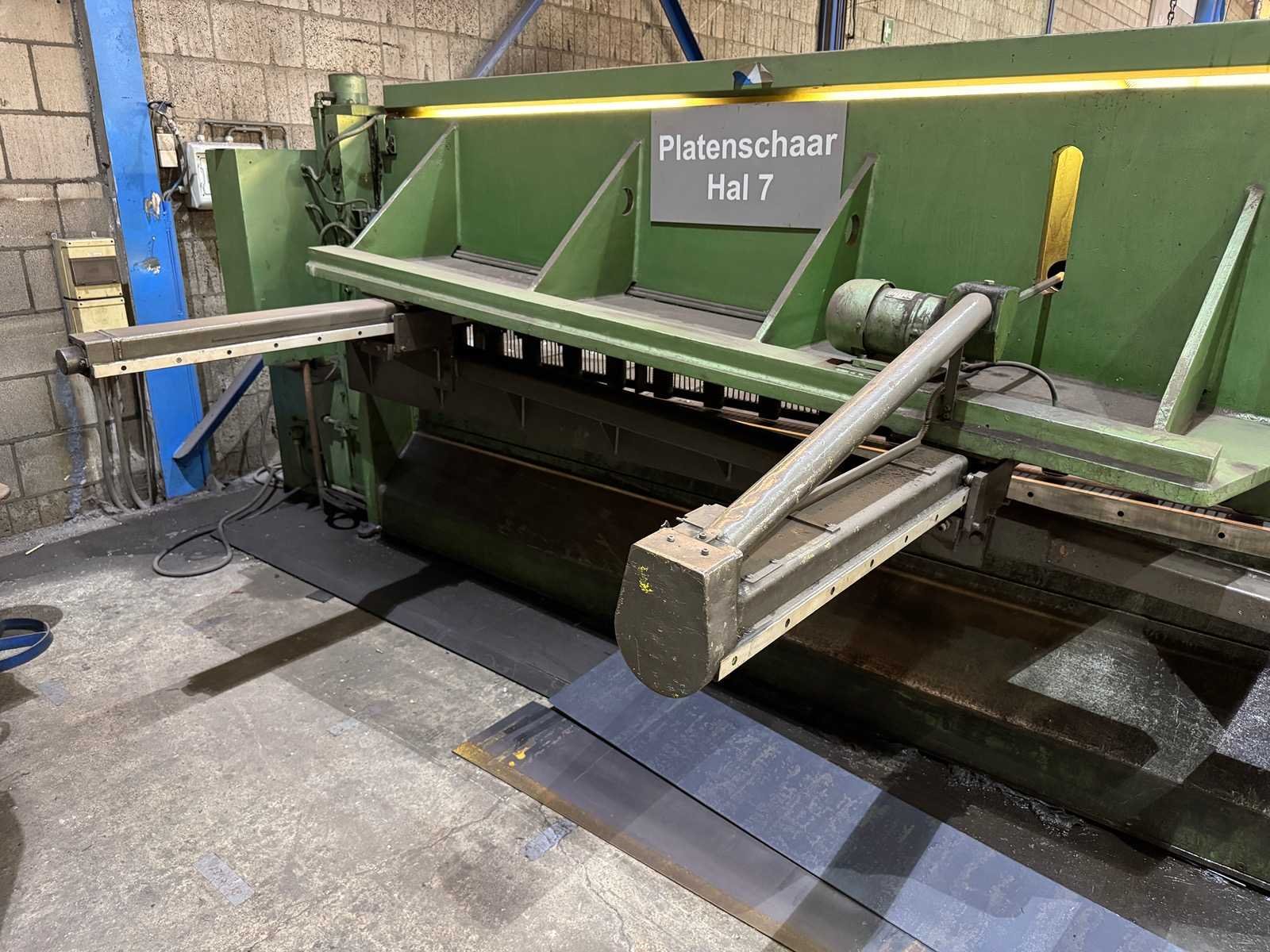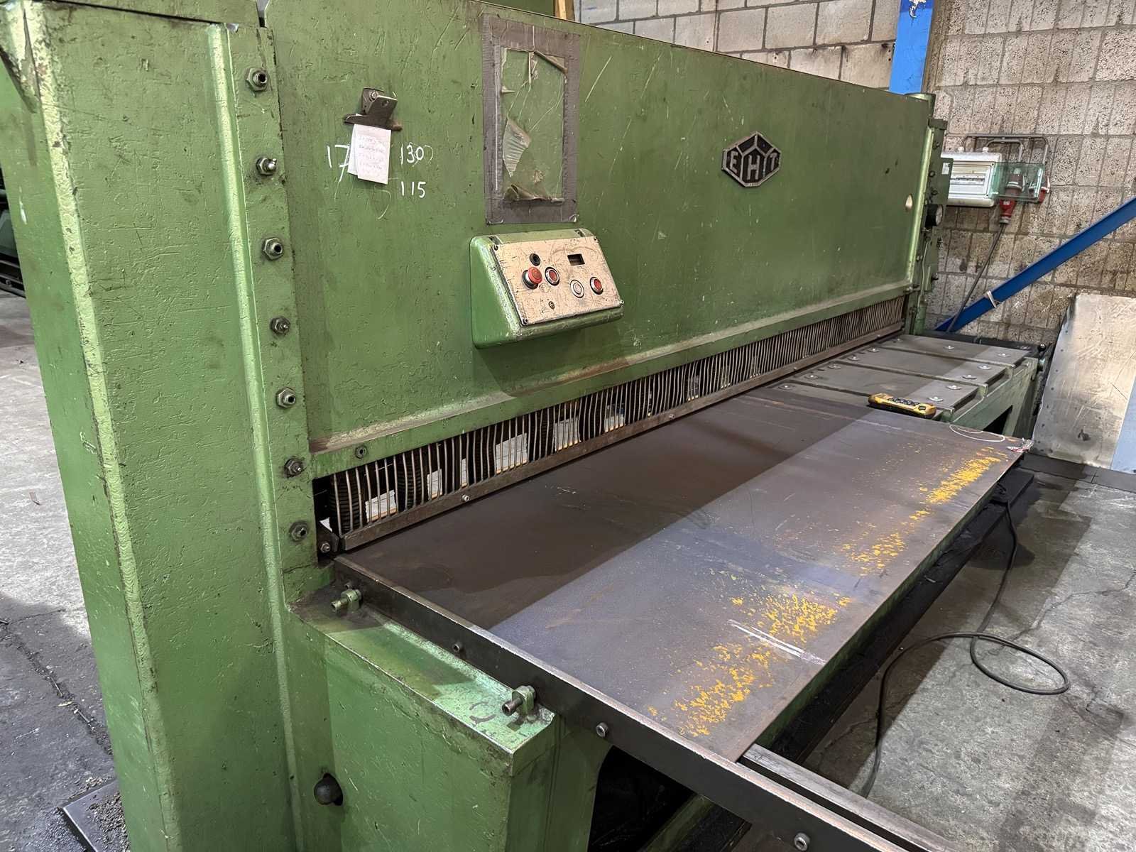 Werkbreedte: 3050mm, Dikte plaat: 10mm, voorzien van: Aanvoertafel 2500x2000mm Merk: EHT Type: TSH Bouwjaar: 1964 Snijlengte: 3050mm Max. plaatdikte: 10mm Afgelezen urenstand: 3423 Afmeting l: 4250mm Afmeting b: 2800mm Afmeting h: 1800mm