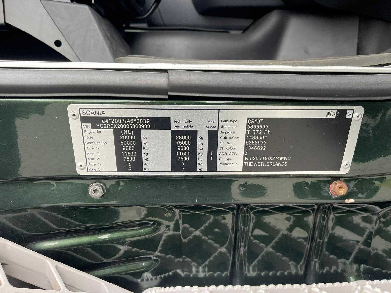 Kenteken: 32-BFP-5 Merk: Scania Type: R520 Bouwjaar: 2015 Chassisnummer VIN: YS2R6X20005368933 Cilinderinhoud: 16353cc APK vervaldatum: 2026-04-22 Datum eerste toelating: 2015-02-02 Datum eerste toelating (NL): 2015-02-02 Fuel Type: Diesel Laadvermogen: 13785kg Emissieklasse: 6 Afgelezen kilometerstand: 1043778km Nationaliteit documenten: NL Aantal zitplaatsen: 2