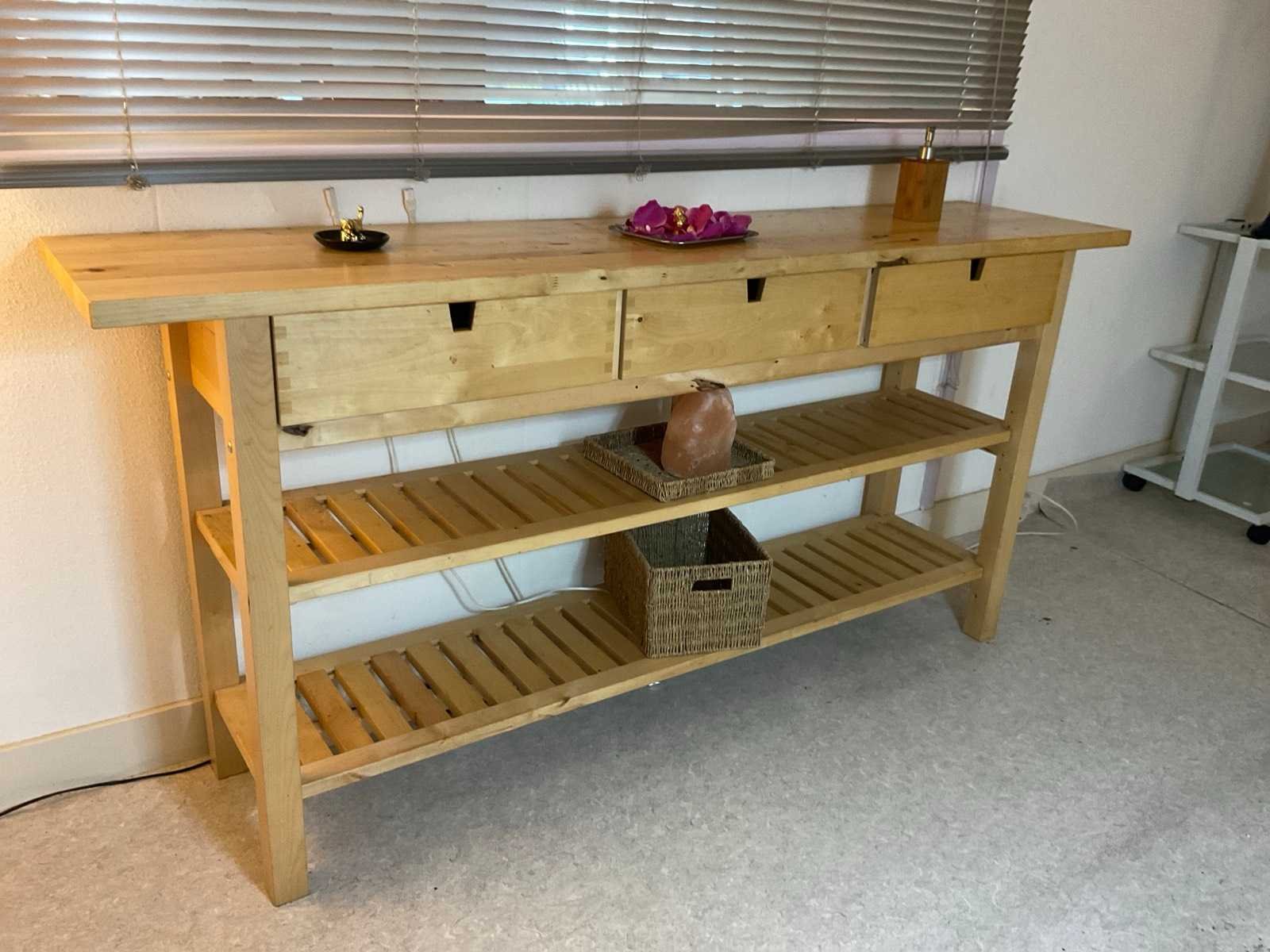 Tweezijdig te gebruiken. Lengte: 190cm Hoogte: 90cm Diepte: 42cm Materiaal: Hout