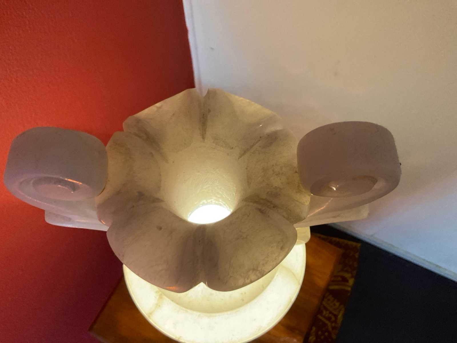 Neoklassieke albasten urnlamp met gesneden bloemdecor
