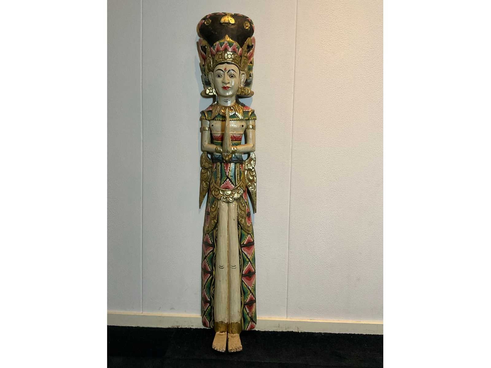 Balinees handgesneden gepolychromeerd beeld van een tempelwachter