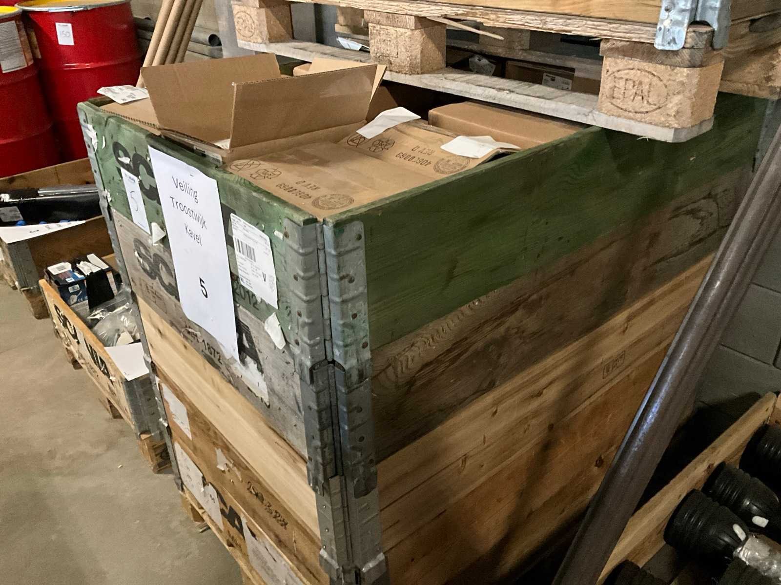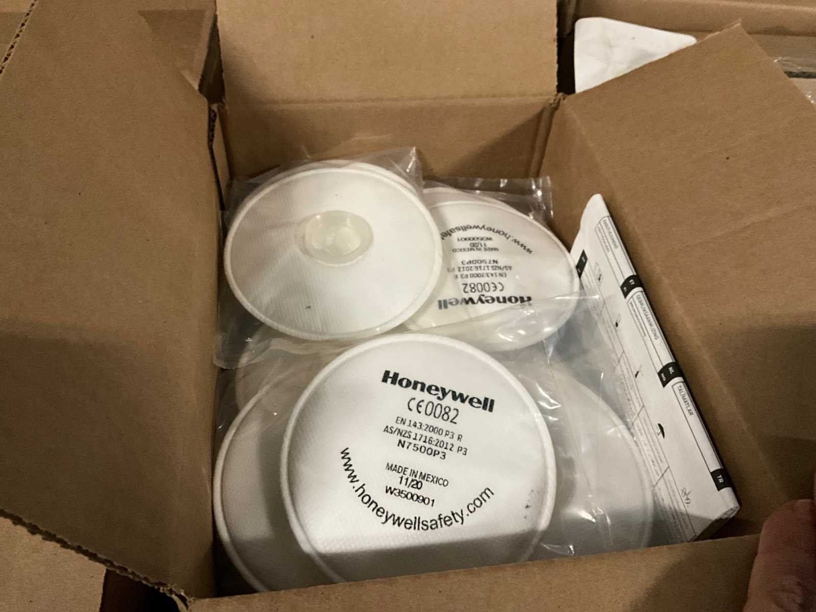 Uit 2 palletkisten, onder andere 70 dozen Honeywell P3 filters á 10 stuks, beschermhoesjes voor gehoorbeschermers, securfit X5 vizier, etc, betreft ongebruikte producten, Let op! zonder pallets of palletranden